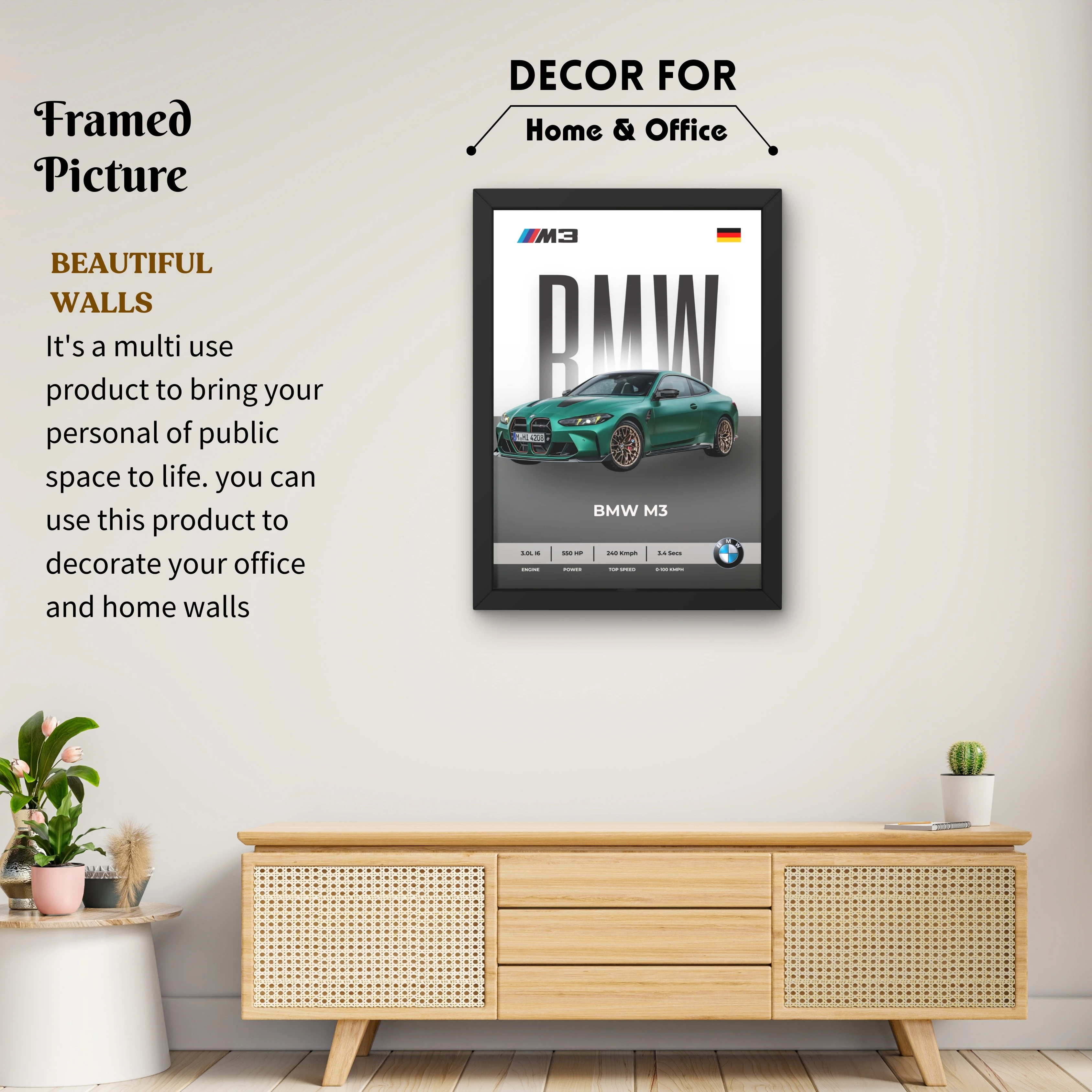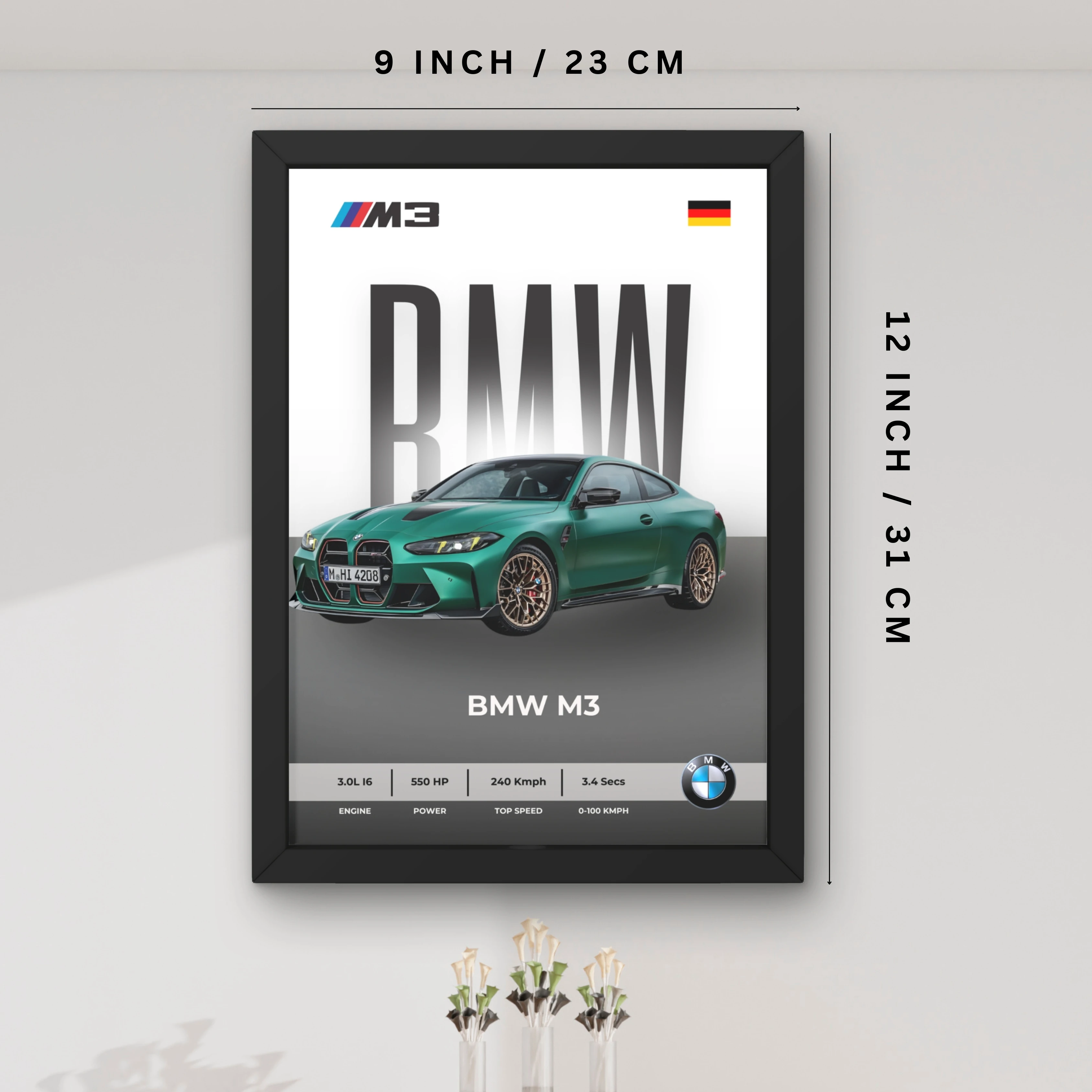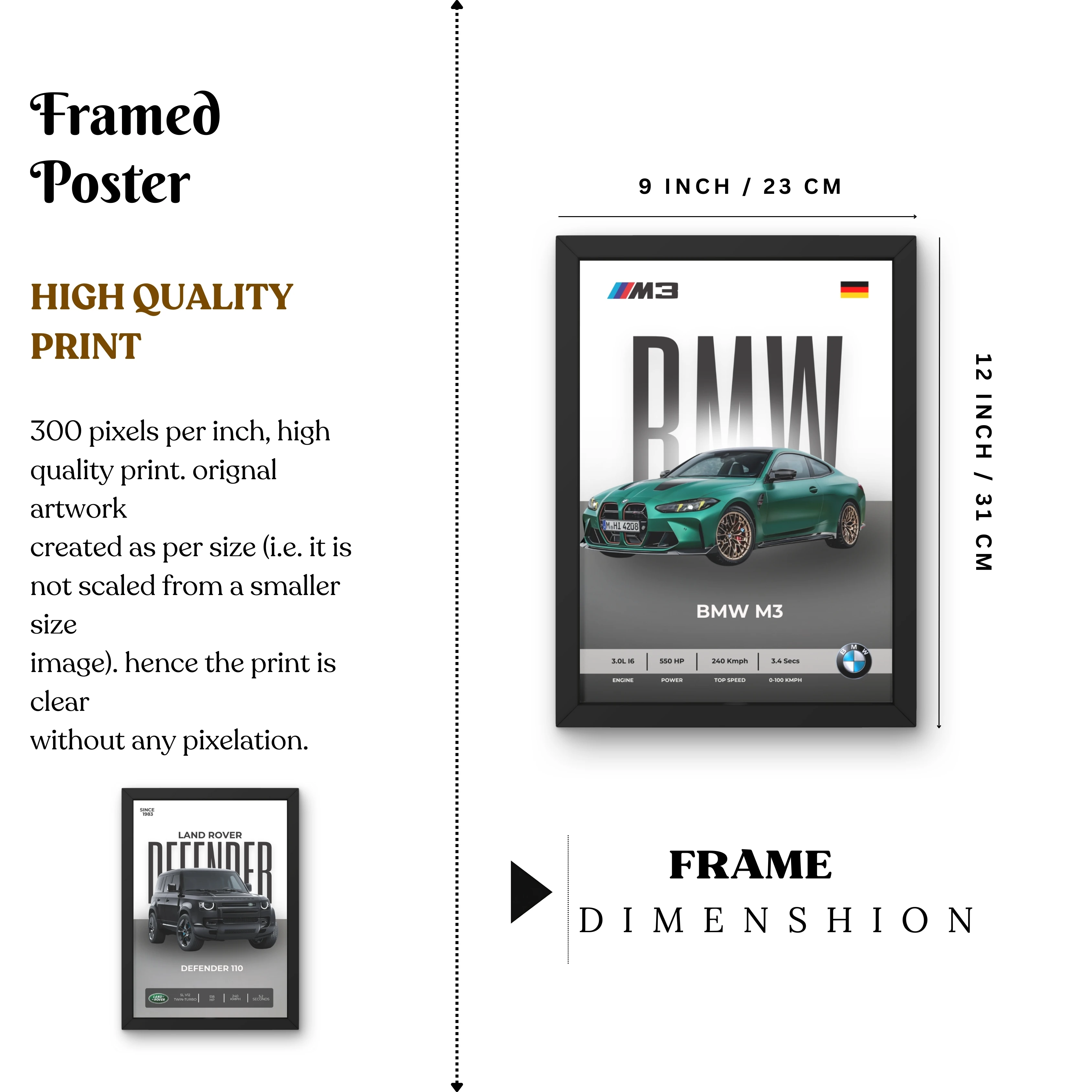VK Craft Creations Wall Frame Poster | Framed Artwork for Living Room & Bedroom Décor | Bold Automotive Wall Art Gift for Men | Boys & Car Enthusiasts, 12 x 9 inch Pack of 1 (Style 49)