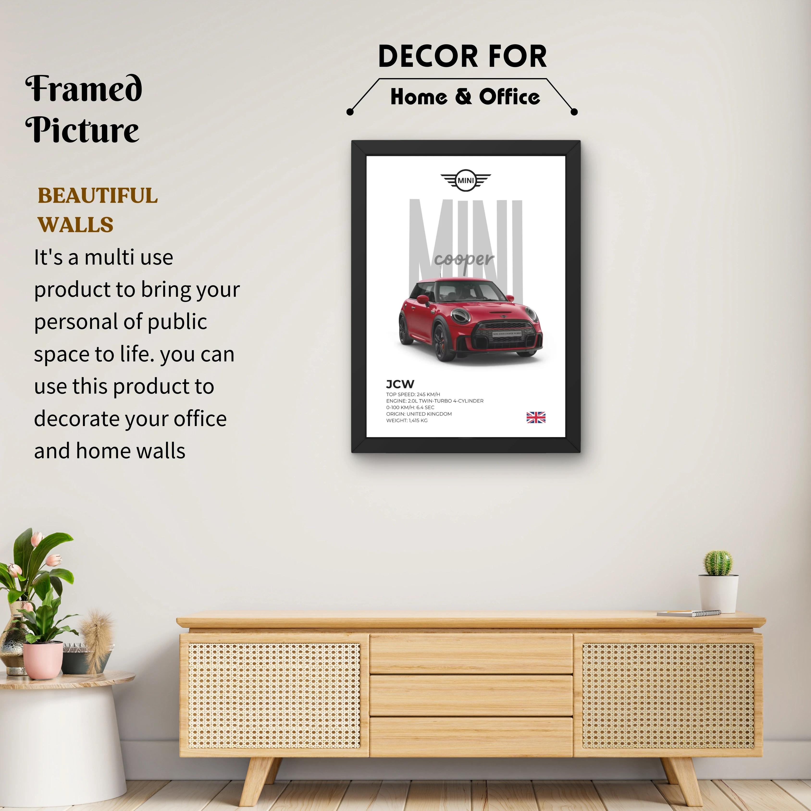 VK Craft Creations Wall Frame Poster | Framed Artwork for Living Room & Bedroom Décor | Bold Automotive Wall Art Gift for Men | Boys & Car Enthusiasts, 12 x 9 inch Pack of 1 (Style 52)