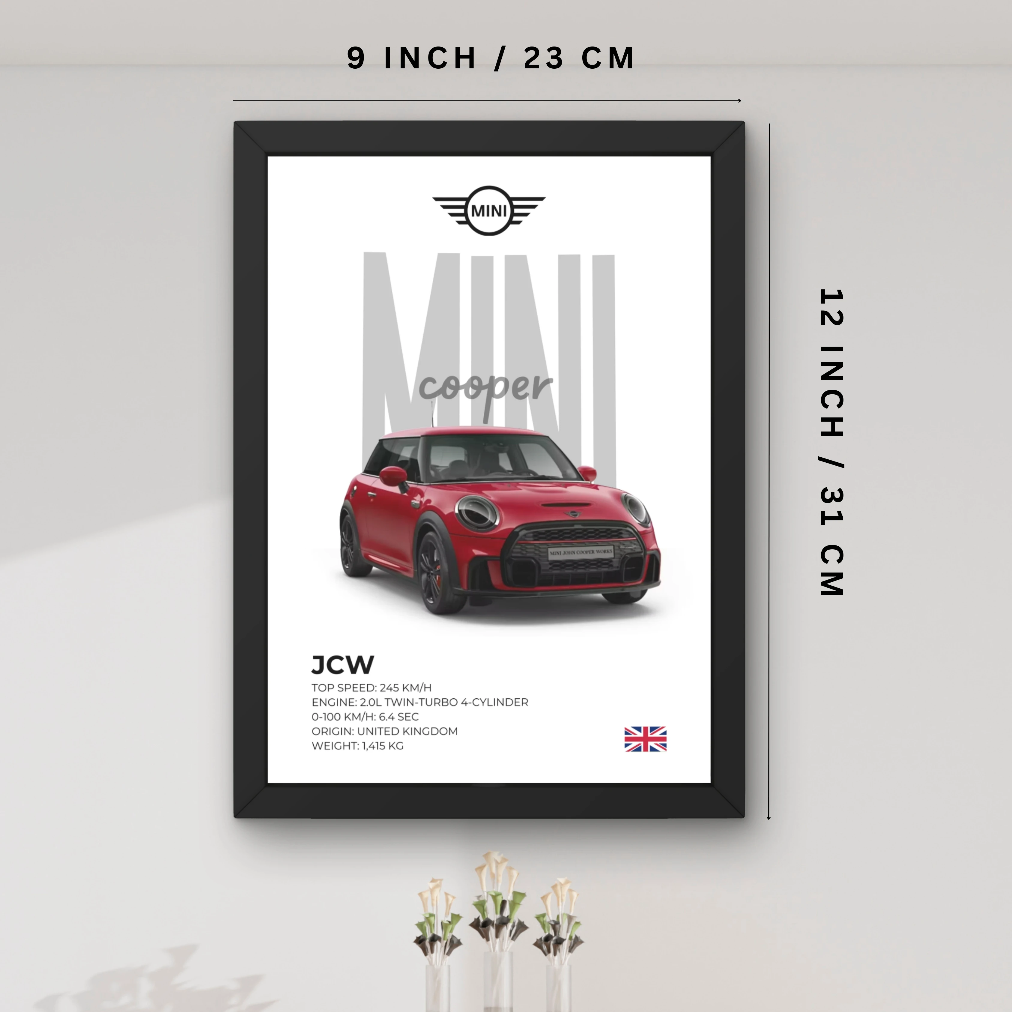 VK Craft Creations Wall Frame Poster | Framed Artwork for Living Room & Bedroom Décor | Bold Automotive Wall Art Gift for Men | Boys & Car Enthusiasts, 12 x 9 inch Pack of 1 (Style 49)