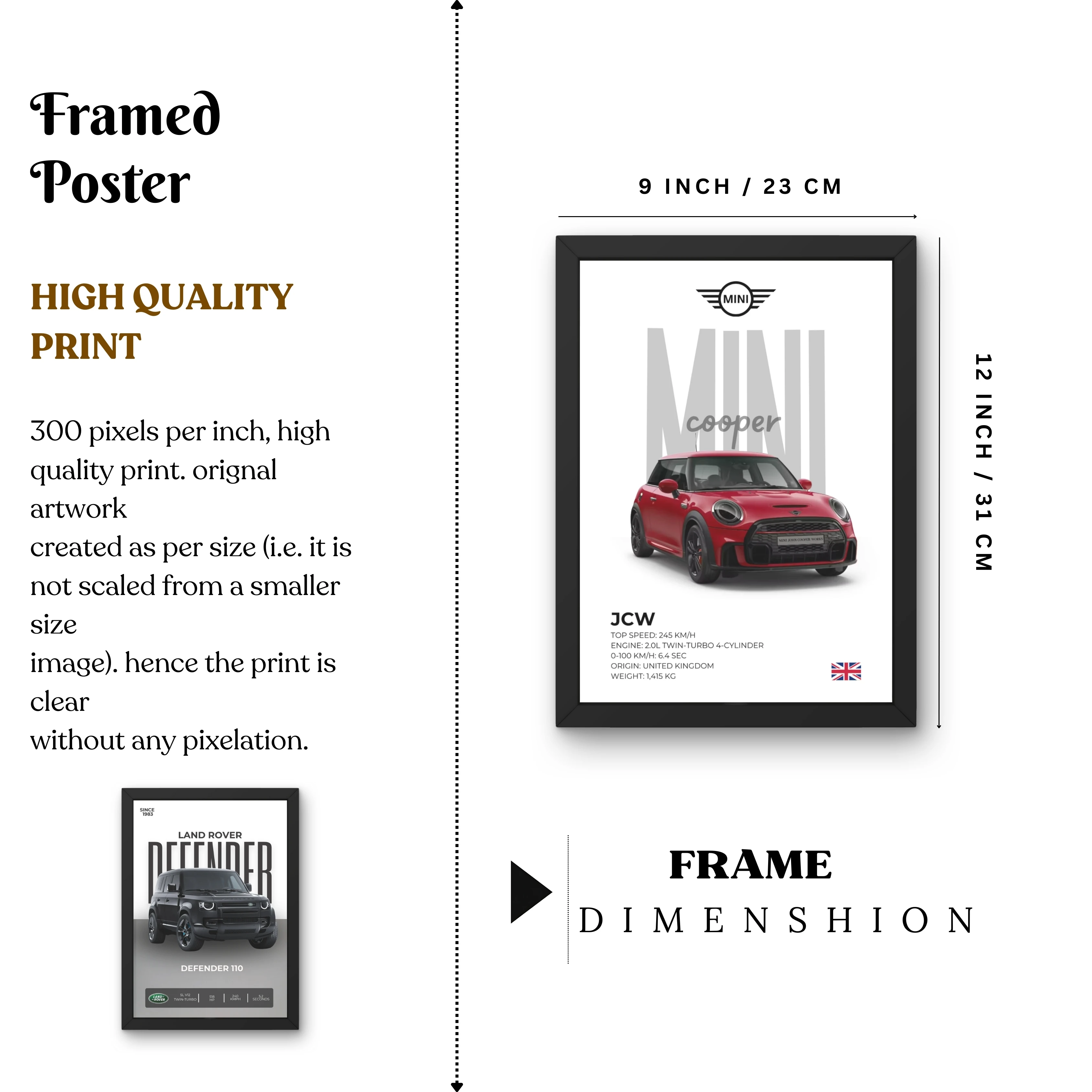 VK Craft Creations Wall Frame Poster | Framed Artwork for Living Room & Bedroom Décor | Bold Automotive Wall Art Gift for Men | Boys & Car Enthusiasts, 12 x 9 inch Pack of 1 (Style 50)