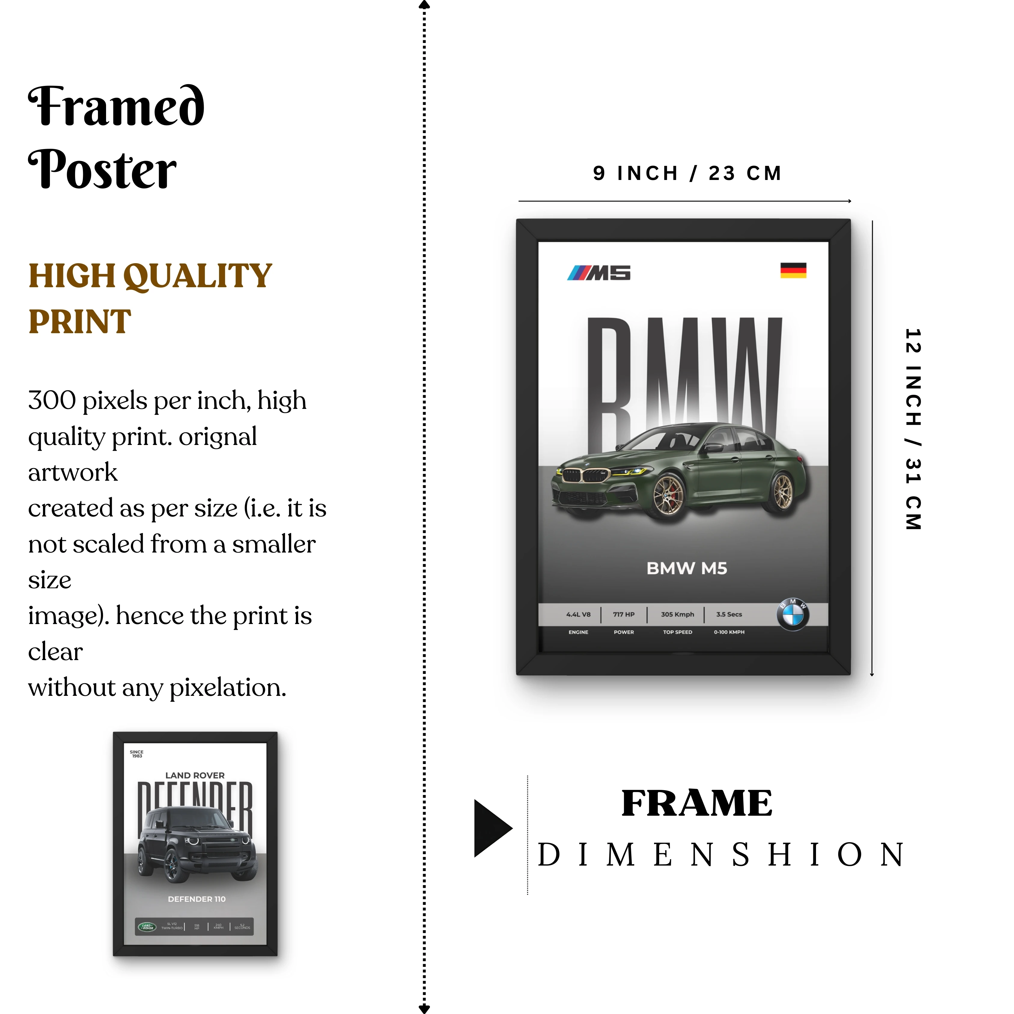 VK Craft Creations Wall Frame Poster | Framed Artwork for Living Room & Bedroom Décor | Bold Automotive Wall Art Gift for Men | Boys & Car Enthusiasts, 12 x 9 inch Pack of 1 (Style 50)