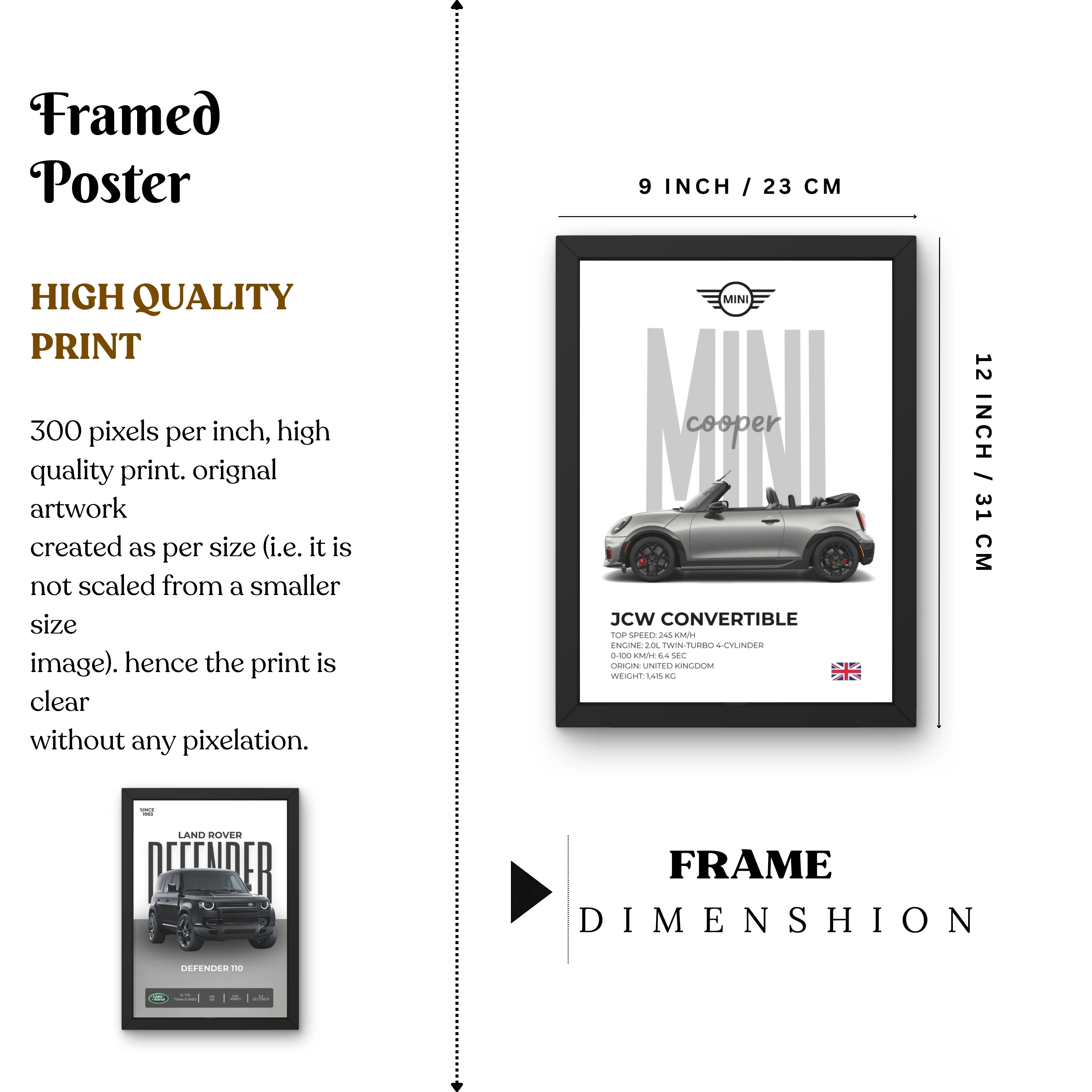 VK Craft Creations Wall Frame Poster | Framed Artwork for Living Room & Bedroom Décor | Bold Automotive Wall Art Gift for Men | Boys & Car Enthusiasts, 12 x 9 inch Pack of 1 (Style 49)