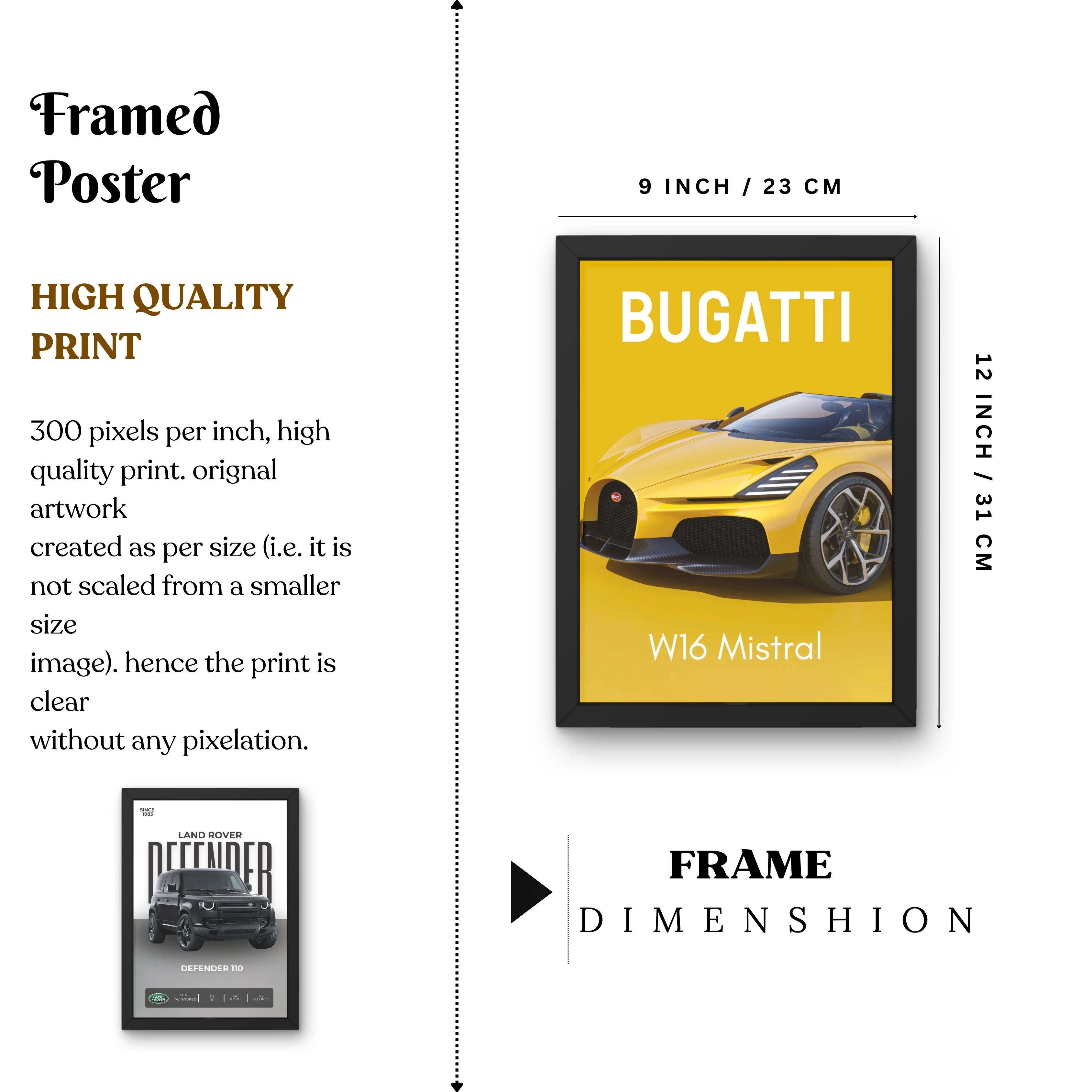 VK Craft Creations Wall Frame Poster | Framed Artwork for Living Room & Bedroom Décor | Bold Automotive Wall Art Gift for Men | Boys & Car Enthusiasts, 12 x 9 inch Pack of 1 (Style 51)
