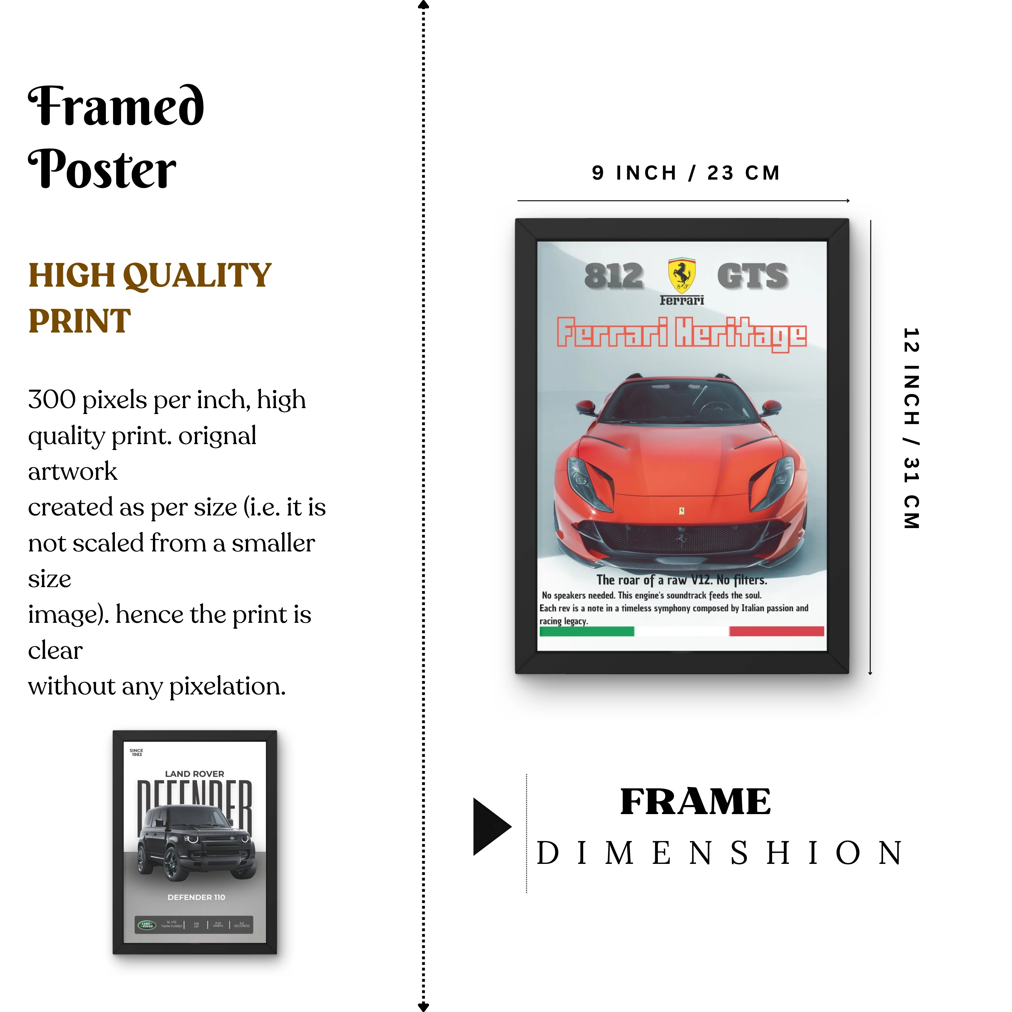 VK Craft Creations Wall Frame Poster | Framed Artwork for Living Room & Bedroom Décor | Bold Automotive Wall Art Gift for Men | Boys & Car Enthusiasts, 12 x 9 inch Pack of 1 (Style 53)