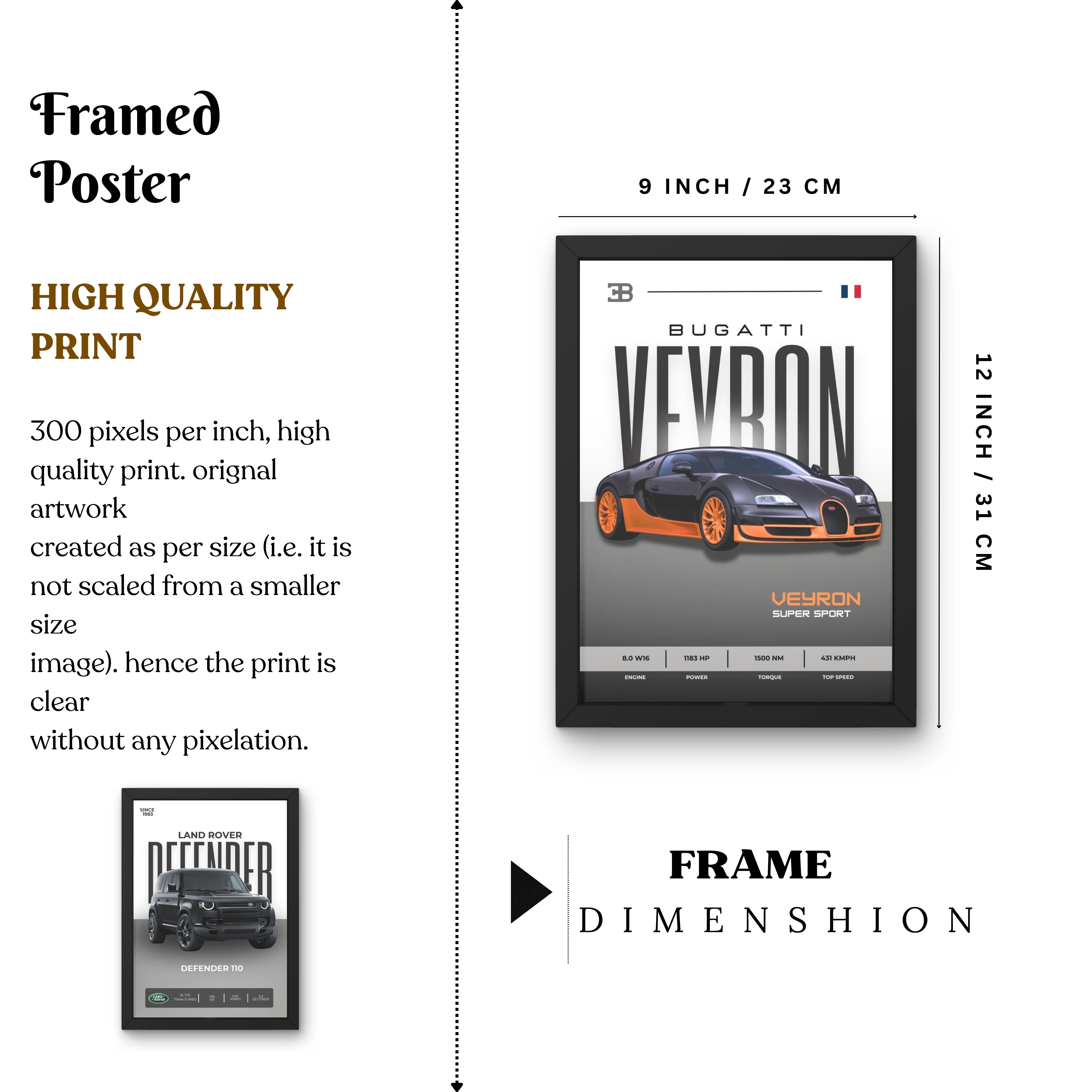 VK Craft Creations Wall Frame Poster | Framed Artwork for Living Room & Bedroom Décor | Bold Automotive Wall Art Gift for Men | Boys & Car Enthusiasts, 12 x 9 inch Pack of 1 (Style 49)