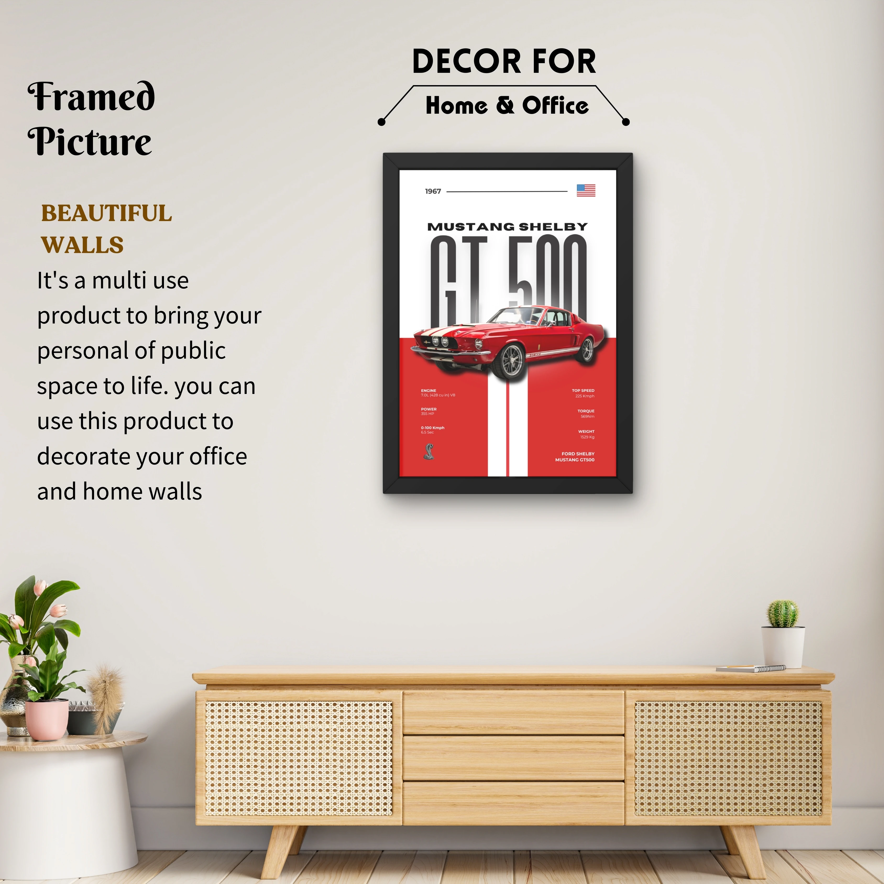 VK Craft Creations Wall Frame Poster | Framed Artwork for Living Room & Bedroom Décor | Bold Automotive Wall Art Gift for Men | Boys & Car Enthusiasts, 12 x 9 inch Pack of 1 (Style 50)
