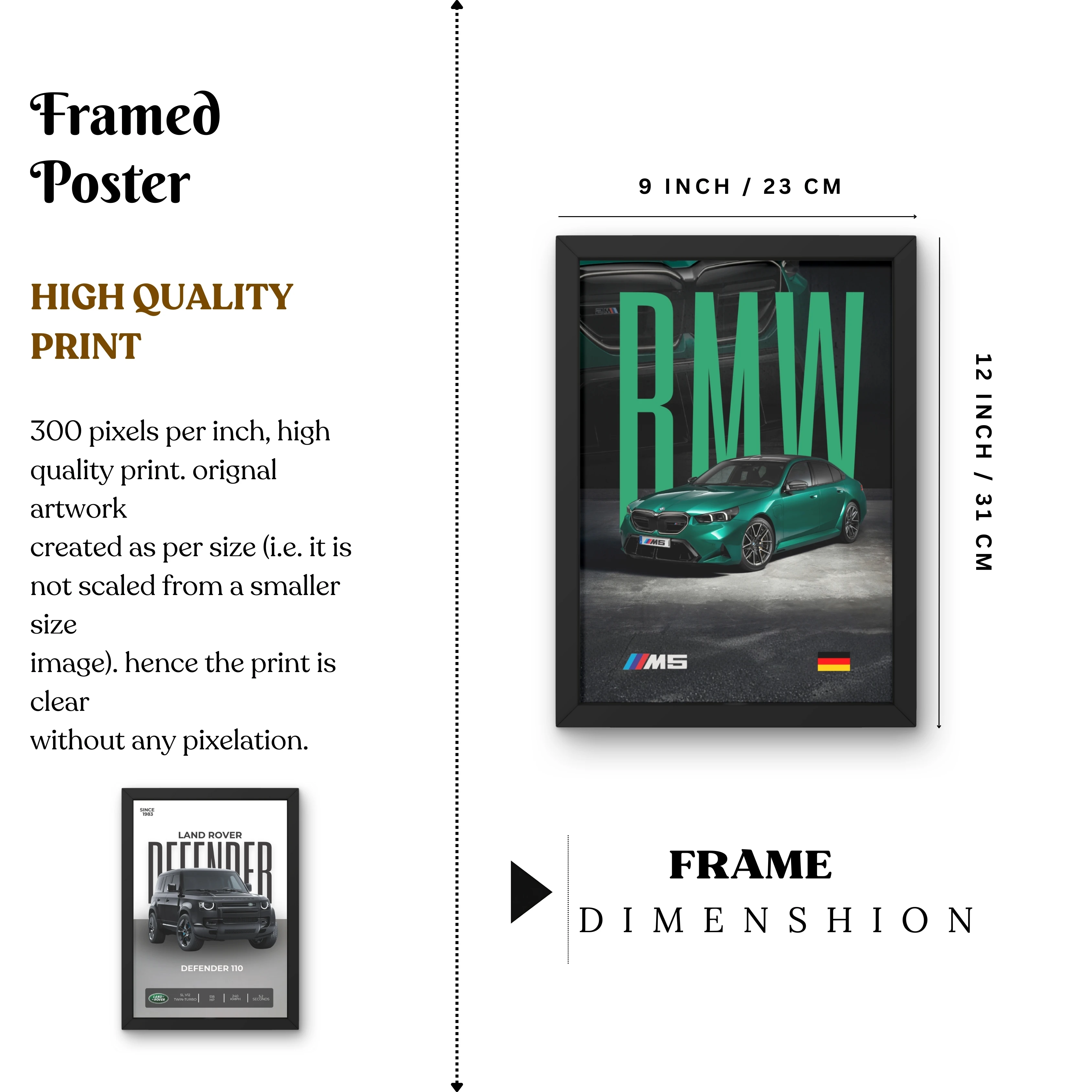 VK Craft Creations Wall Frame Poster | Framed Artwork for Living Room & Bedroom Décor | Bold Automotive Wall Art Gift for Men | Boys & Car Enthusiasts, 12 x 9 inch Pack of 1 (Style 50)