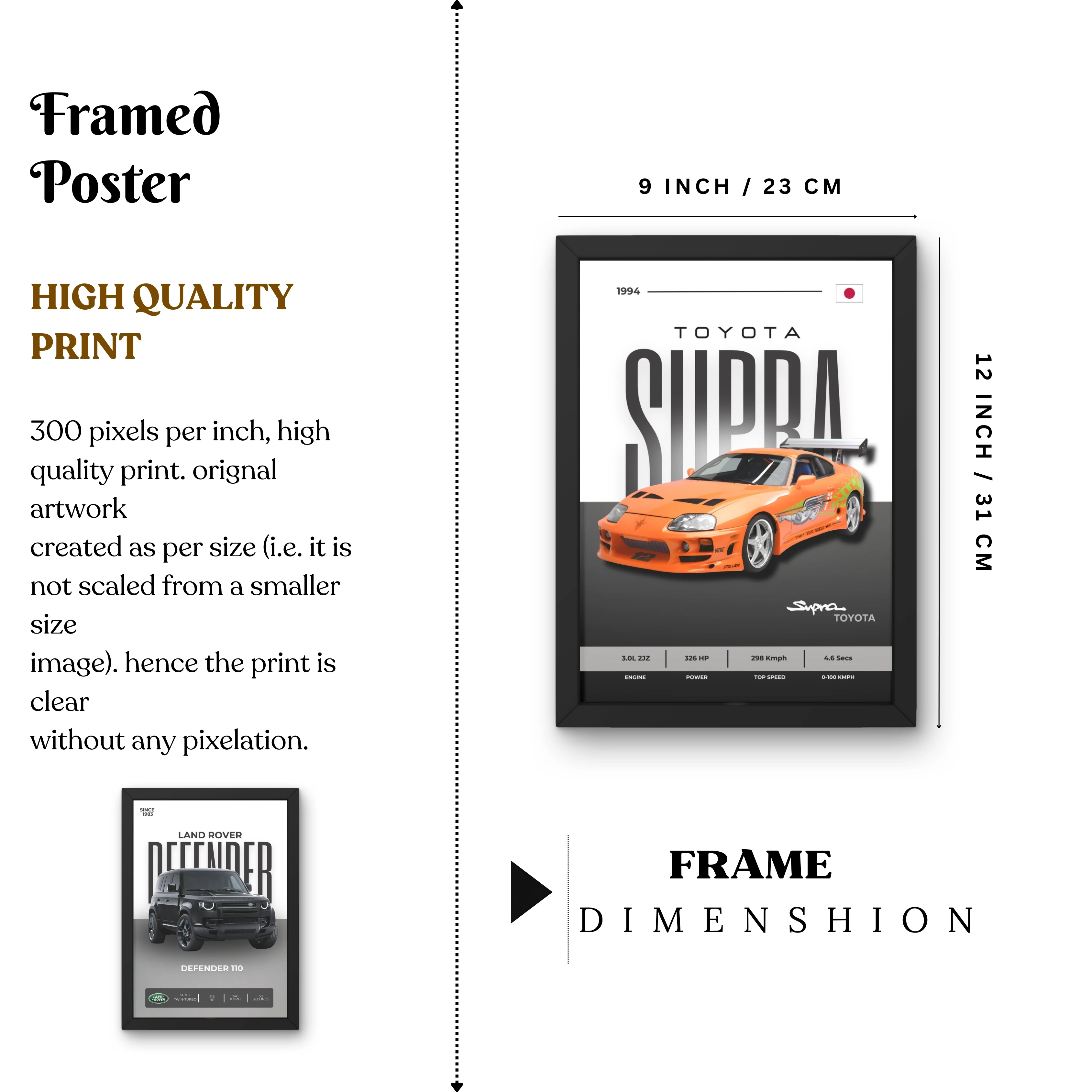 VK Craft Creations Wall Frame Poster | Framed Artwork for Living Room & Bedroom Décor | Bold Automotive Wall Art Gift for Men | Boys & Car Enthusiasts, 12 x 9 inch Pack of 1 (Style 53)