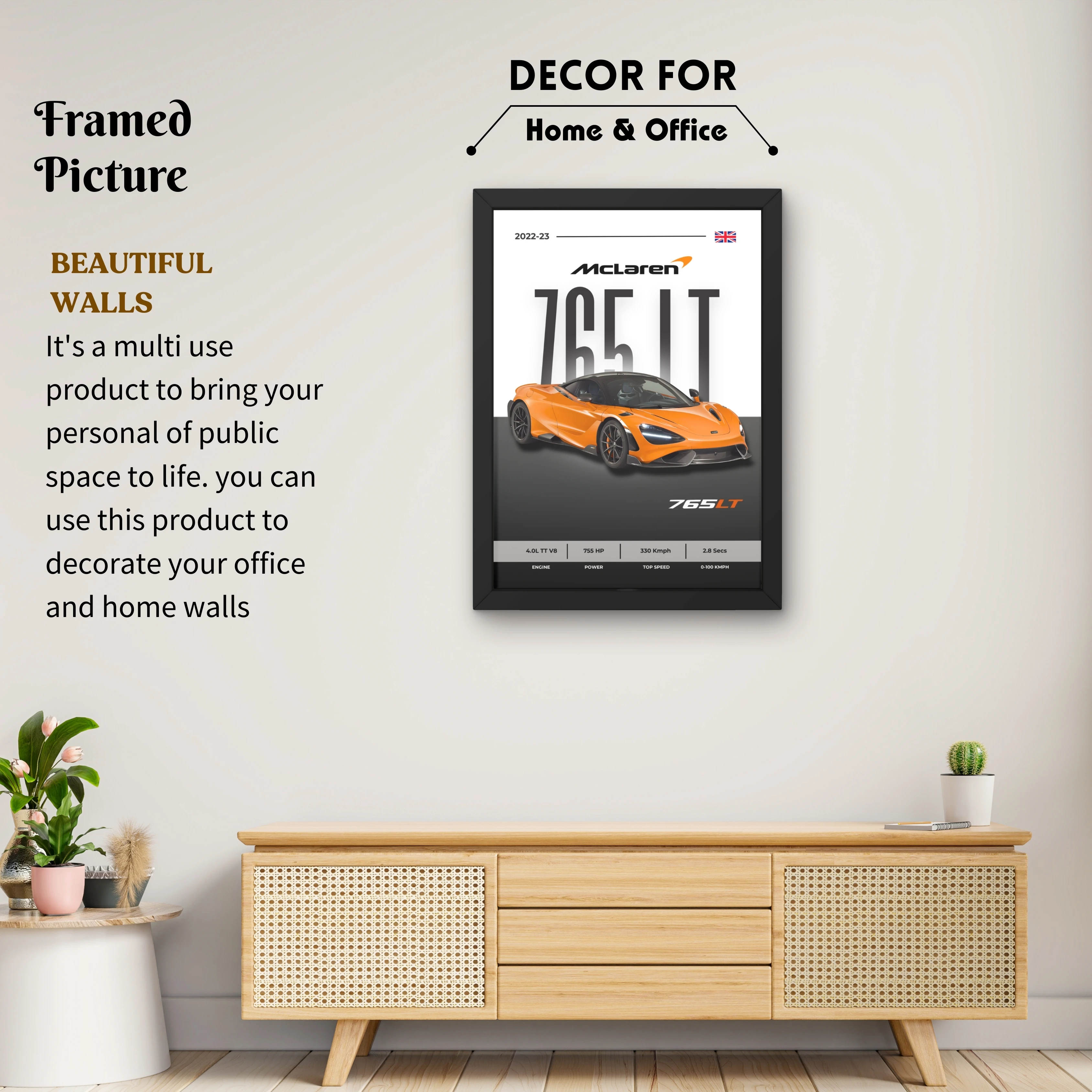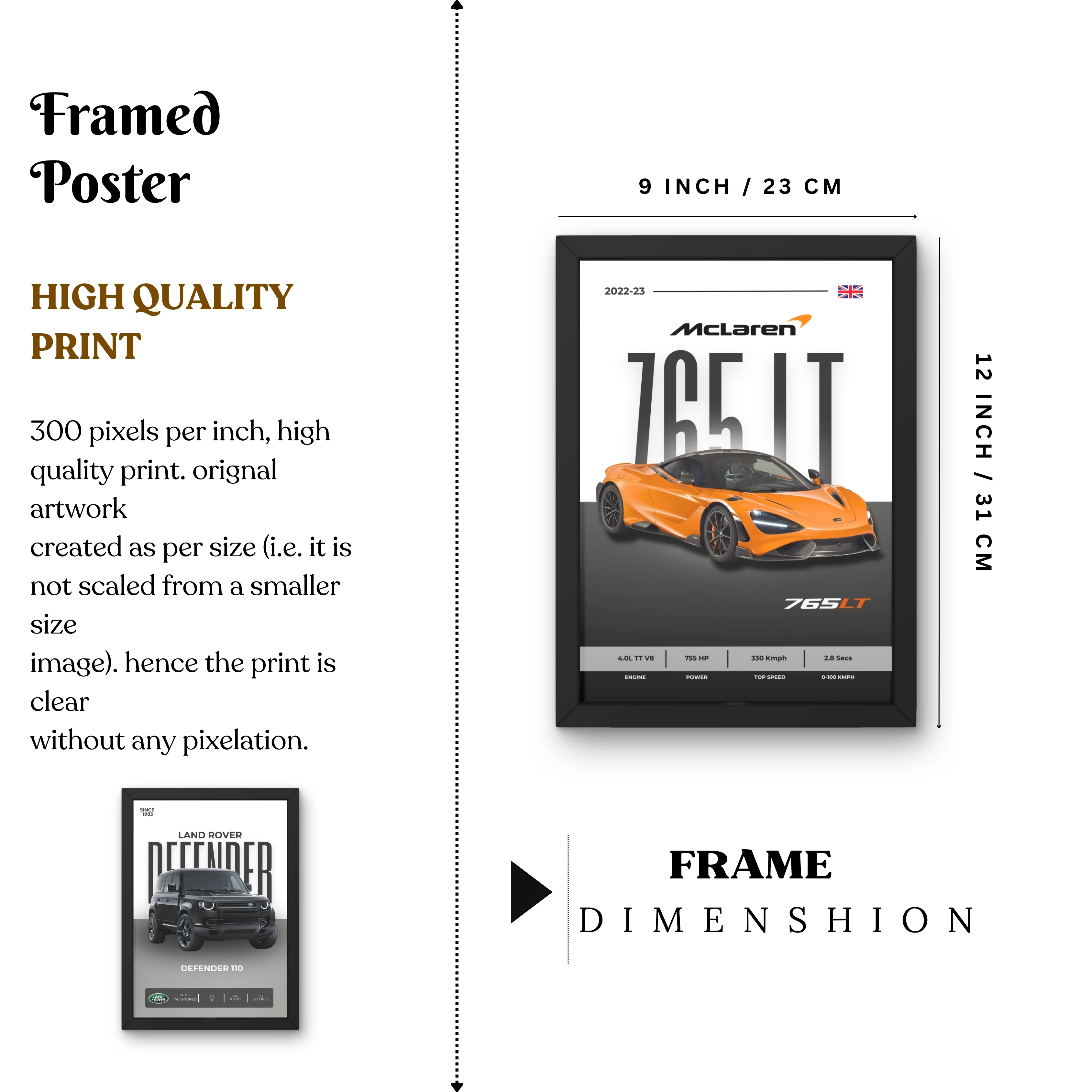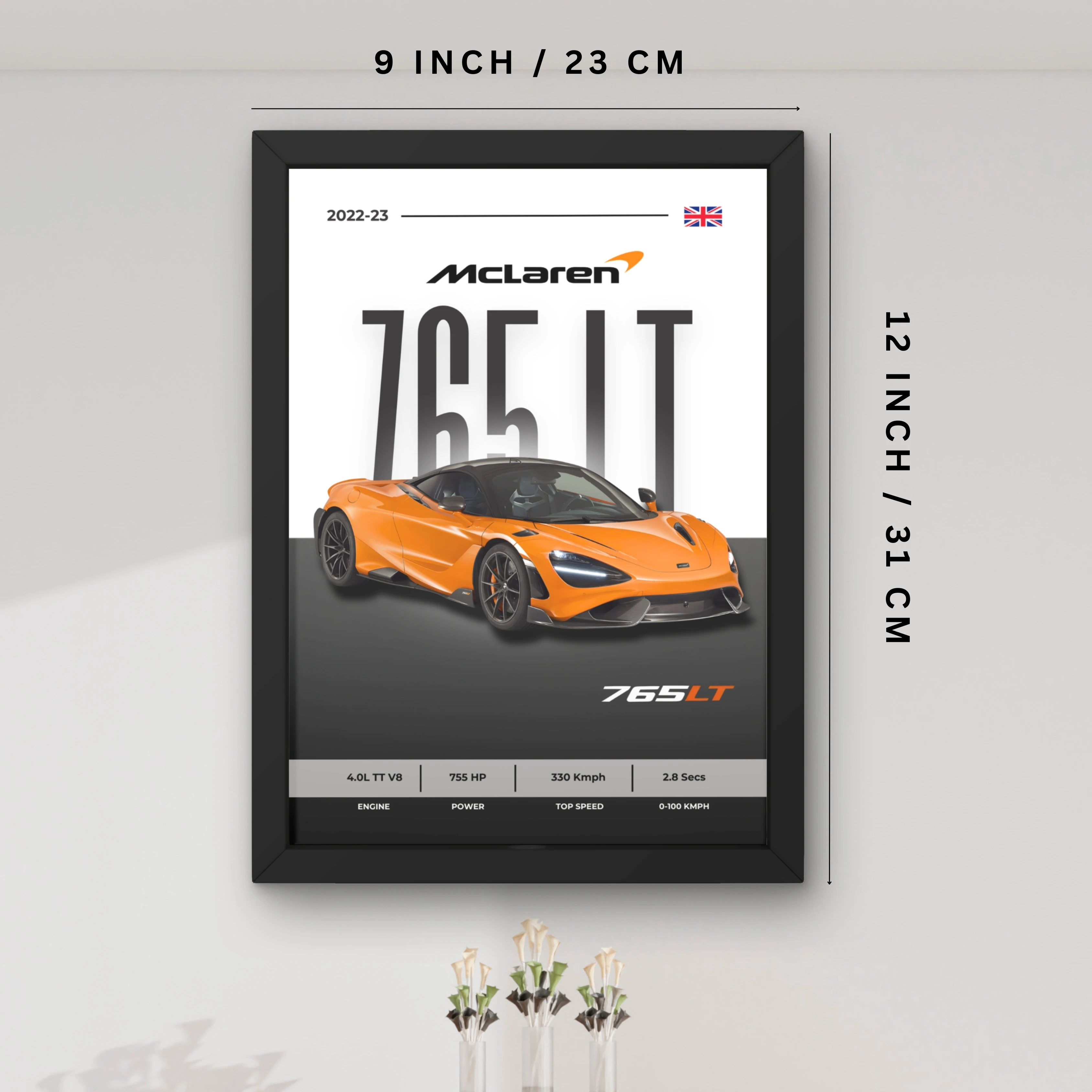VK Craft Creations Wall Frame Poster | Framed Artwork for Living Room & Bedroom Décor | Bold Automotive Wall Art Gift for Men | Boys & Car Enthusiasts, 12 x 9 inch Pack of 1 (Style 49)
