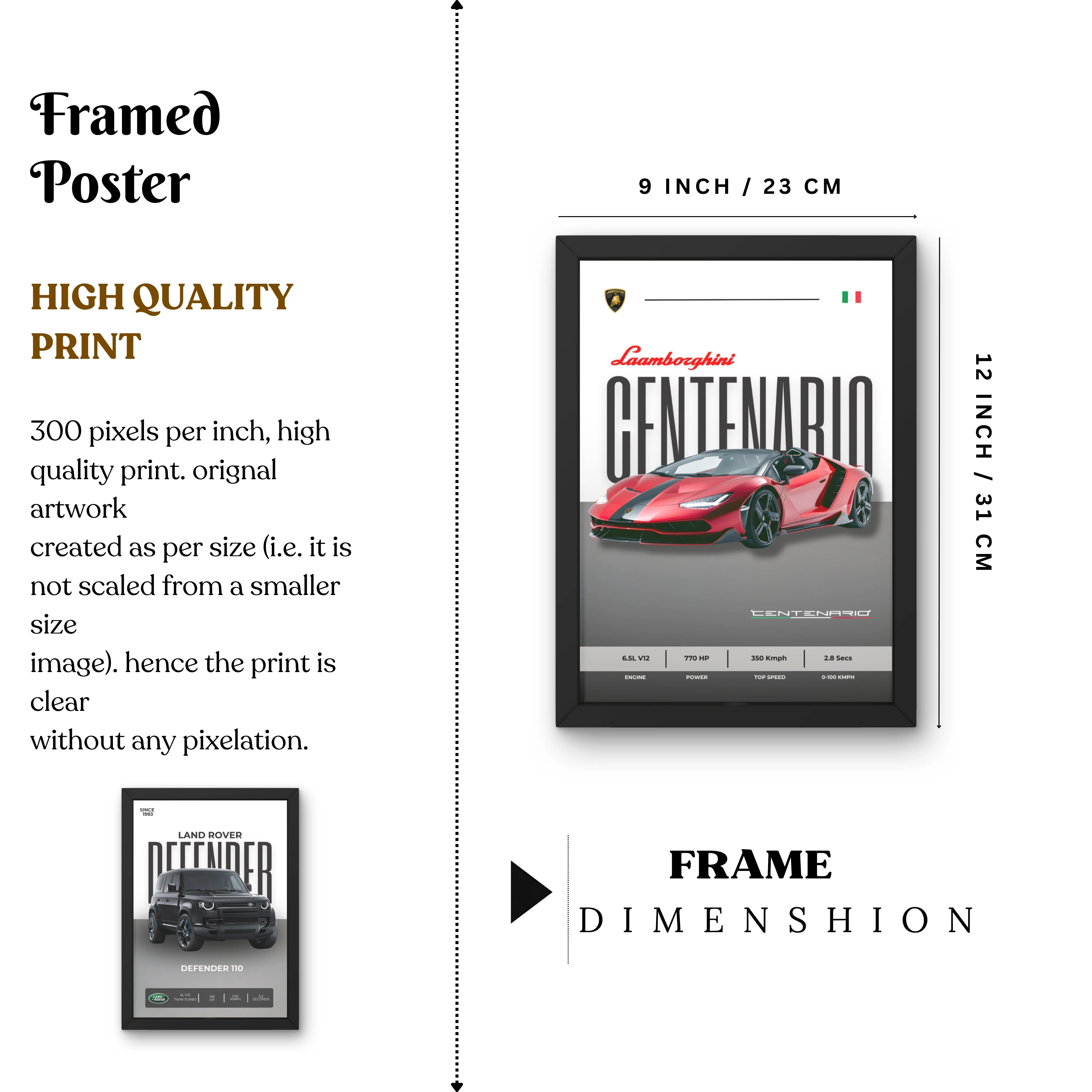 VK Craft Creations Wall Frame Poster | Framed Artwork for Living Room & Bedroom Décor | Bold Automotive Wall Art Gift for Men | Boys & Car Enthusiasts, 12 x 9 inch Pack of 1 (Style 50)