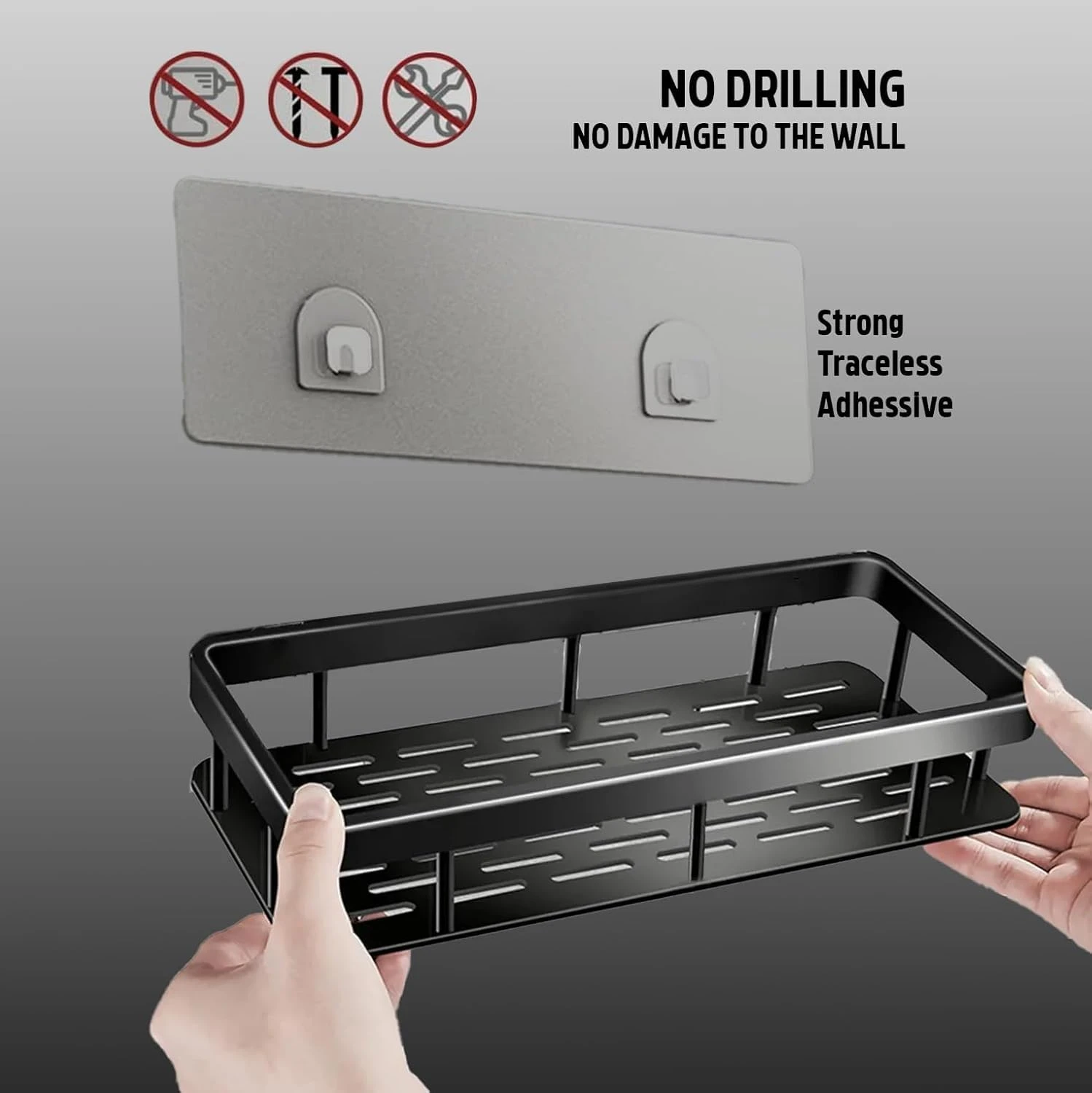 Wall Mounted Self-Adhesive Bathroom Shelf/Kitchen Rack & Holder/Soap Holder/Storage Organizer Rack - Bathroom Accessories (Material- Plastic, Black, Pack of 1)