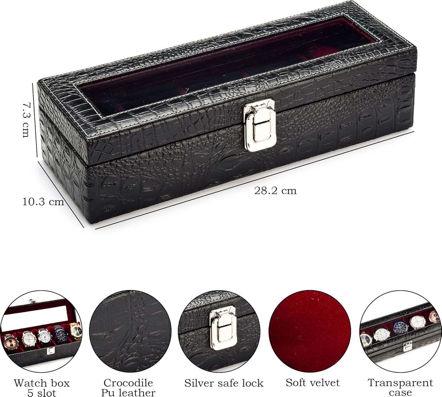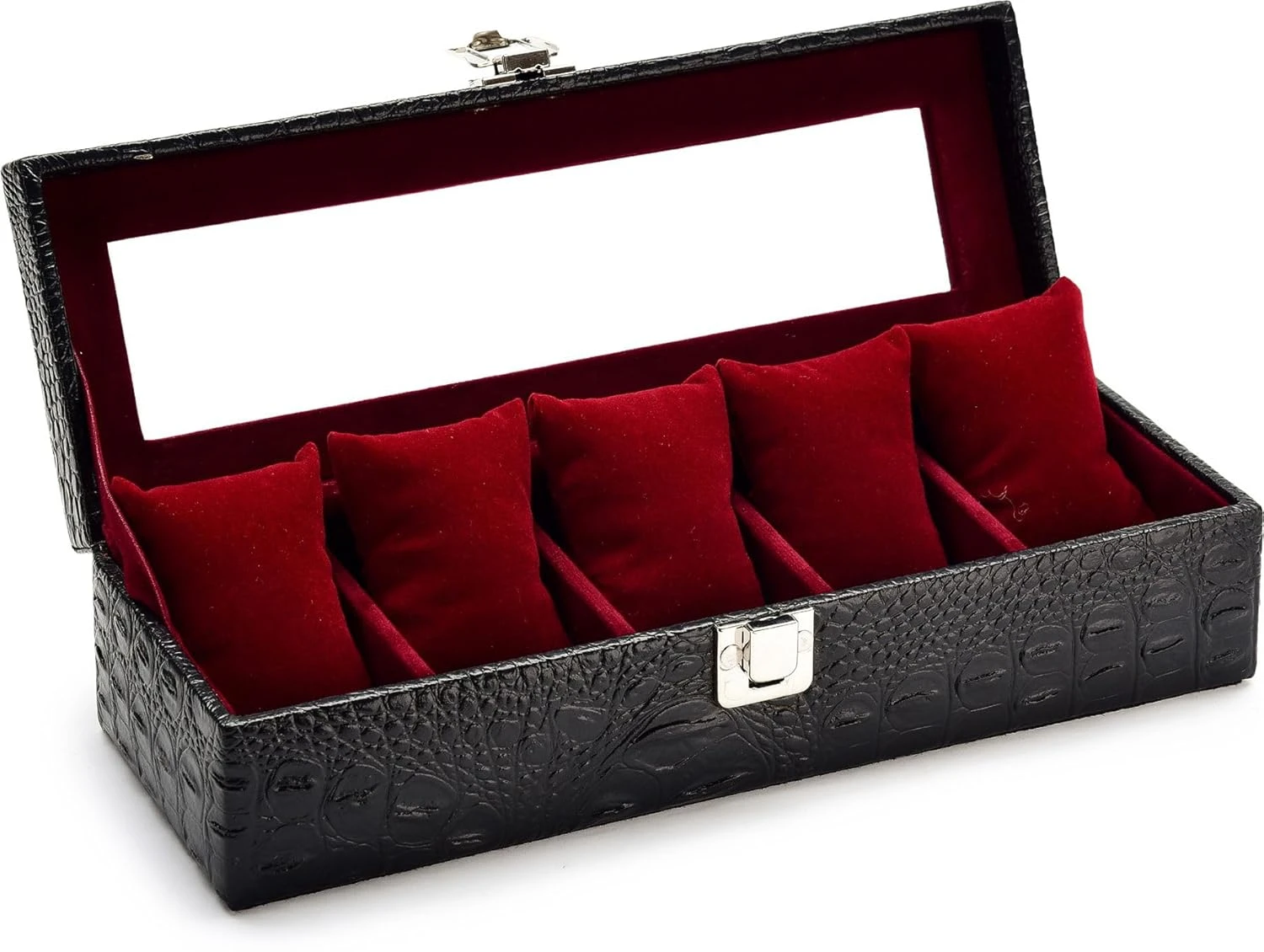 Watch Box Organizer for Men & Women Gift Box – Durable Leatherette with Soft Velvet Pillows (Black::Maroon2, 5 Slots)