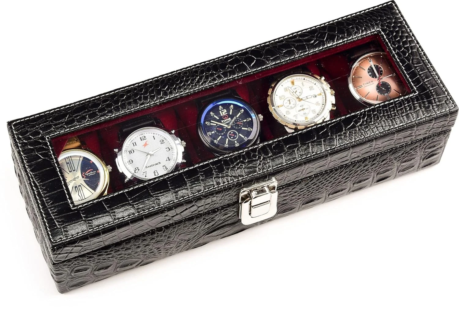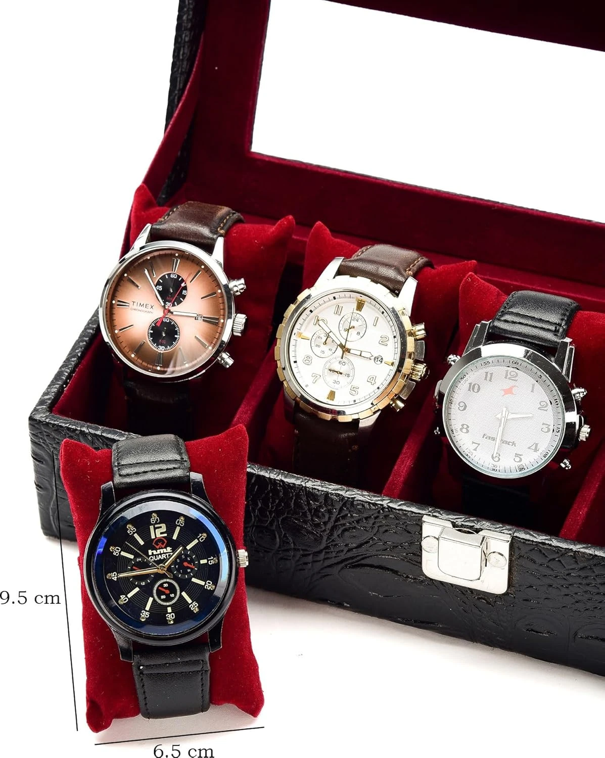 4 Slots Brown Unisex Watch Box Organiser Watch Box (Brown::Maroon, Holds 4 Watches)