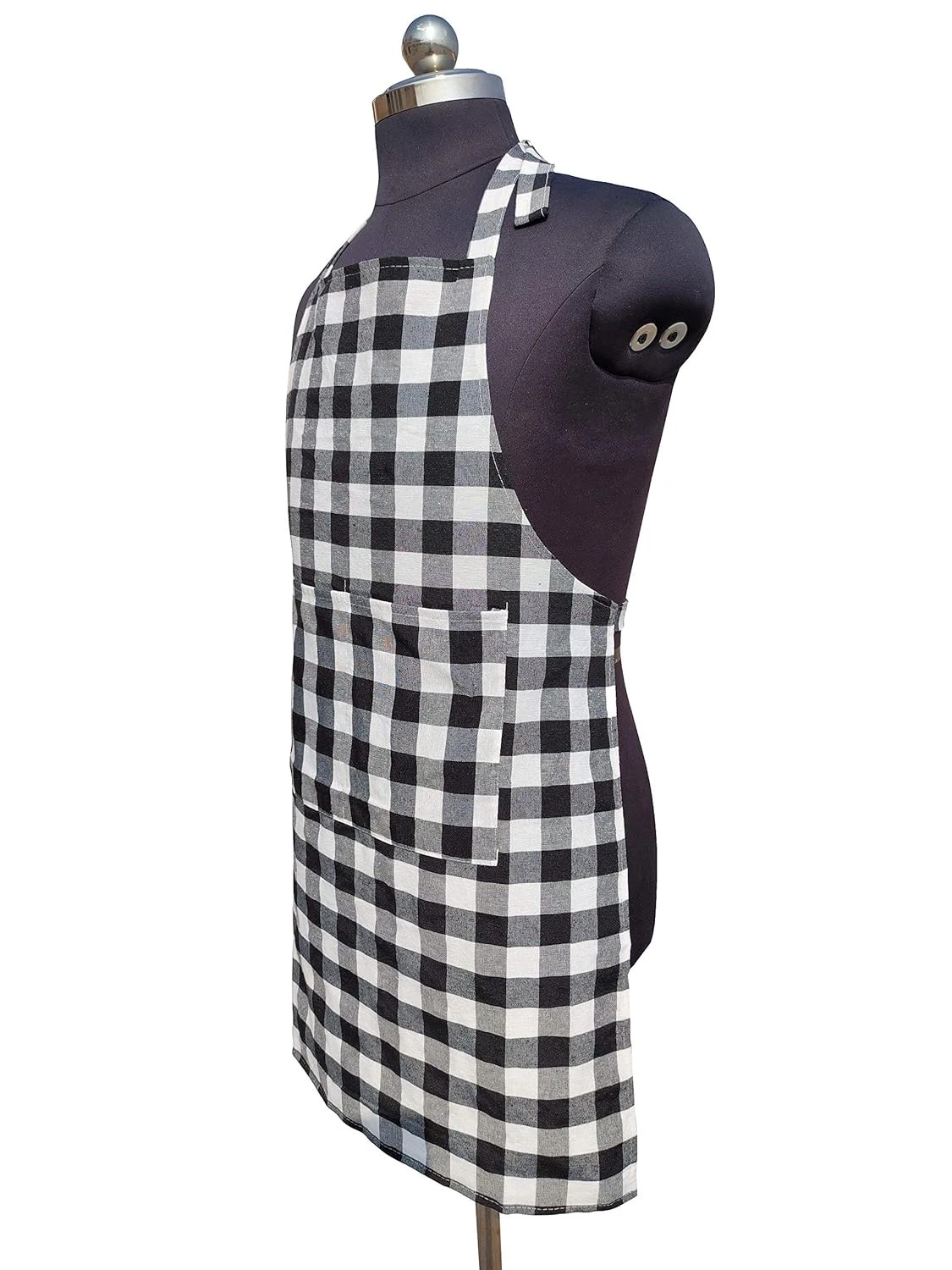 •  Package Contents: Cotton Apron 100% Cotton Check Kitchen Apron with Front Center Pocket Design Apron