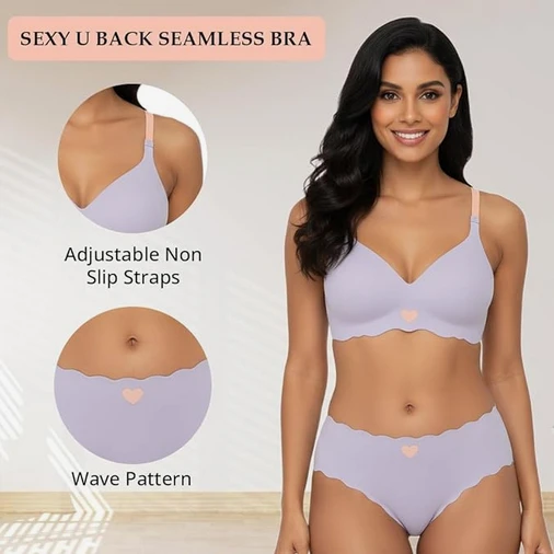 Women Bra Panty Set Soft Natural Support Seamless Backless Summer Bra Panties Set | Adjustable Straps and Heart Design Lingerie Set | Women's Suit Push-Ups Sports Cushioned Underwear Bra Set