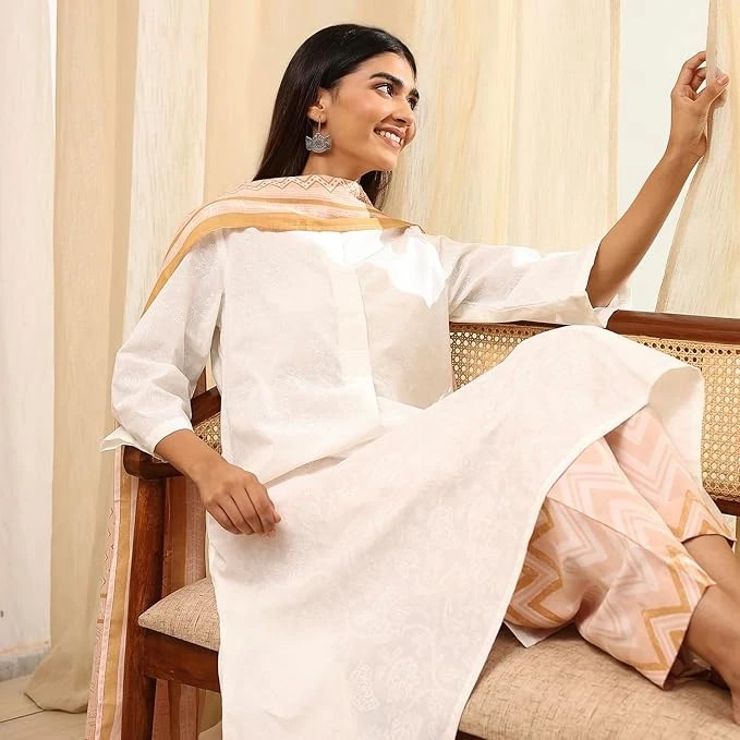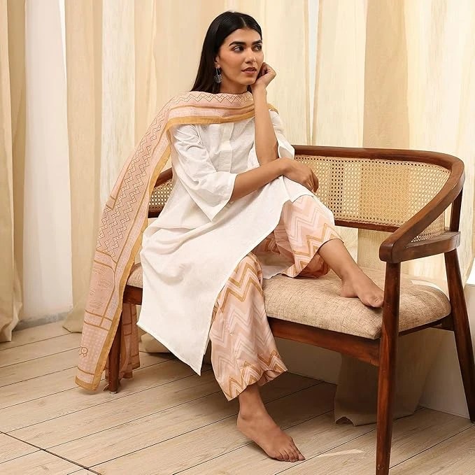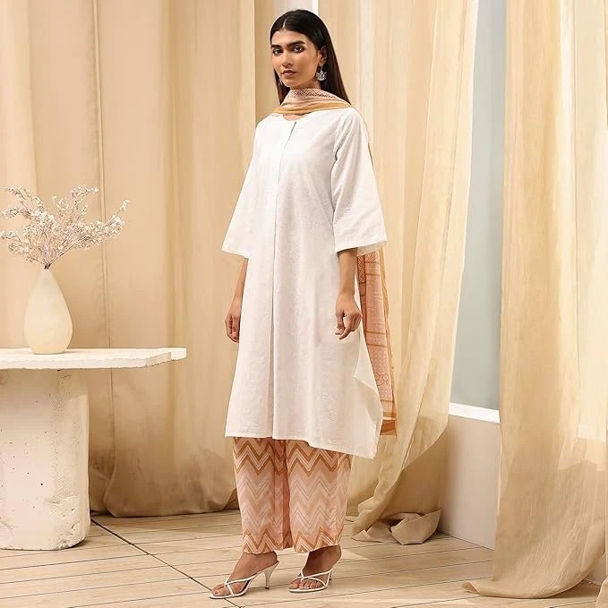 This beautiful Printed Straight Kurta with Palazzo Pants and Dupatta which is made from Cotton fabric with beautiful print all over.This kurta set has been designed keeping in mind the latest trends in contemporary casual fashion. The dress combines ethnic with the fashion of today and makes you stand out among others when you adorn it.