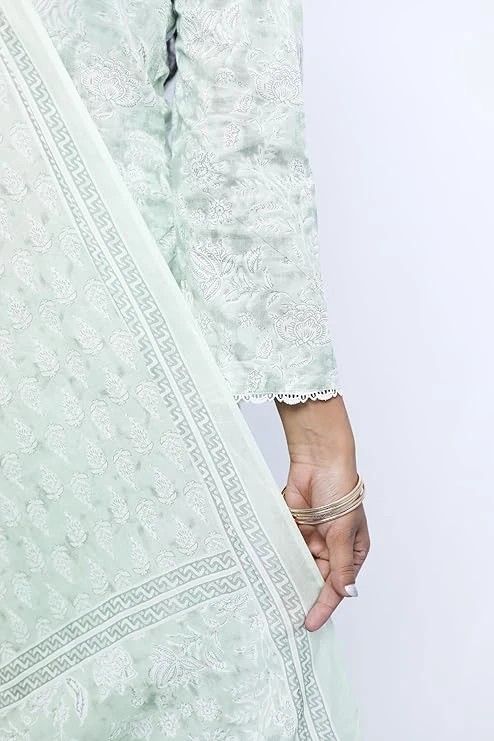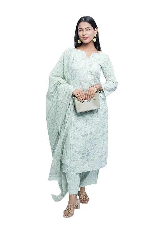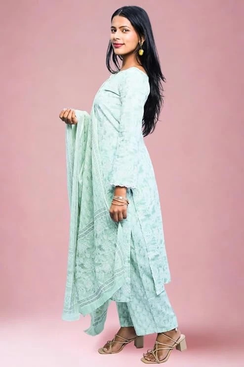 This beautiful Printed Straight Kurta with Pants and Dupatta which is made from Cotton fabric with beautiful print all over.This kurta set has been designed keeping in mind the latest trends in contemporary casual fashion. The dress combines ethnic with the fashion of today and makes you stand out among others when you adorn it.
