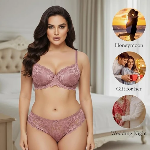 Floral Lace Teddy Strap Babydoll Bodysuit Bra Panty Lingerie | Bikini Lingerie Babydoll Set for Honeymoon Couple Special Wedding Night