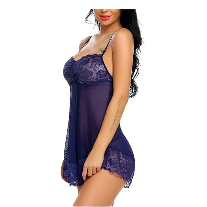 Features delicate lace cups with sheer mesh baby-doll design, halter neck styling, and decorative satin bow detail for a romantic and alluring look