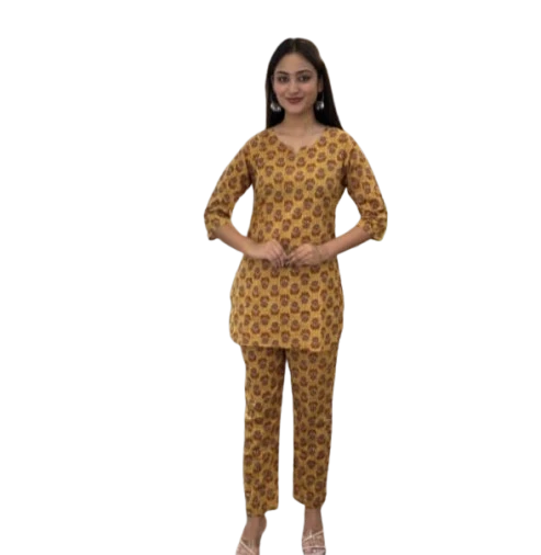 Vibrant Prints: The kurta features eye-catching prints that add a splash of color and personality to your wardrobe. Each pattern is carefully selected to ensure you look chic and stylish. Comfortable Fabric: Made from high-quality, breathable fabric, this set ensures all-day comfort, keeping you cool and relaxed no matter the occasion. Perfect Fit: Designed with a modern silhouette, the kurta and pant set offers a flattering fit that complements all body types, making it a must-have for every wardrobe. Versatile Style: Whether you're heading to the office or a casual gathering, this set can be easily dressed up or down, making it a versatile addition to your clothing collection.Elevate your style with the Women's Printed Kurta and Pant Set, a perfect blend of tradition and modernity. Make it an essential part of your wardrobe today!