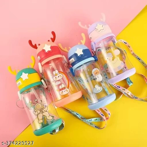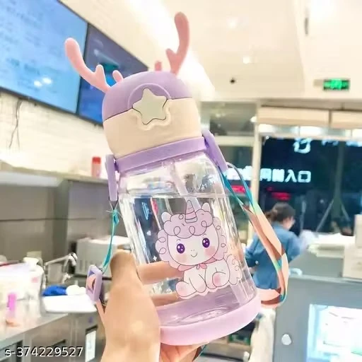 Name: X Pulse 600ml Fancy Cartoon Bpa Free Eco-friendly Kids Plastic Water Bottle With Straw Strap For School (Multicolor)