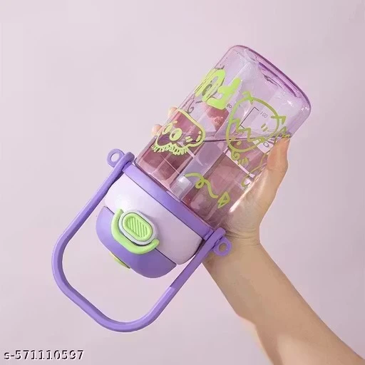 [CUTE DESIGN] - This water bottle adopts a cute shape, which is special and cute, making you unique. It can be used not only as a water bottle but also as a charming accessory, adding an adorable animal pattern to a simple outfit. Sweet macaron color easily matches your clothes and could be a practical decoration to fit your look. [ONE TOUCH BUTTON] - Simply press the button and the straw pops out automatically. And it's easy to clean. The straw can also be removed from the lid, convenient adjustable cord design, practical and beautiful.