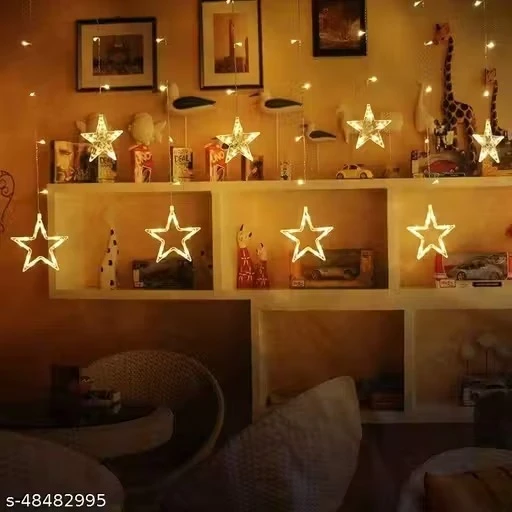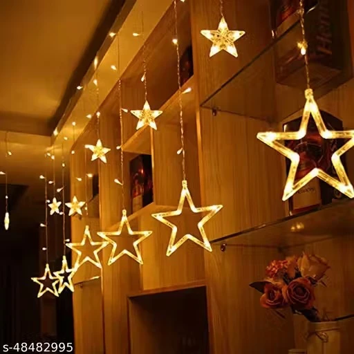 Name: X Pulse LED Star Light Curtain Decorations Festival Light for Indoor/Outdoor (138 LED) {2.5 Meters} [8 Flashing Modes] (10 Star (5 + 5)) Warm White