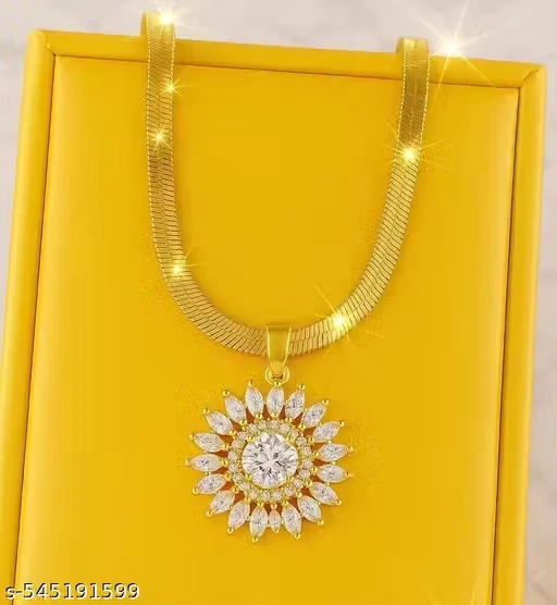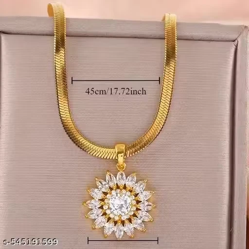 The pendant features a luxurious flower design adorned with shimmering zirconia stones that give a brilliant shine. Its intricate detailing and elegant finish make it a perfect statement piece for any occasion.
