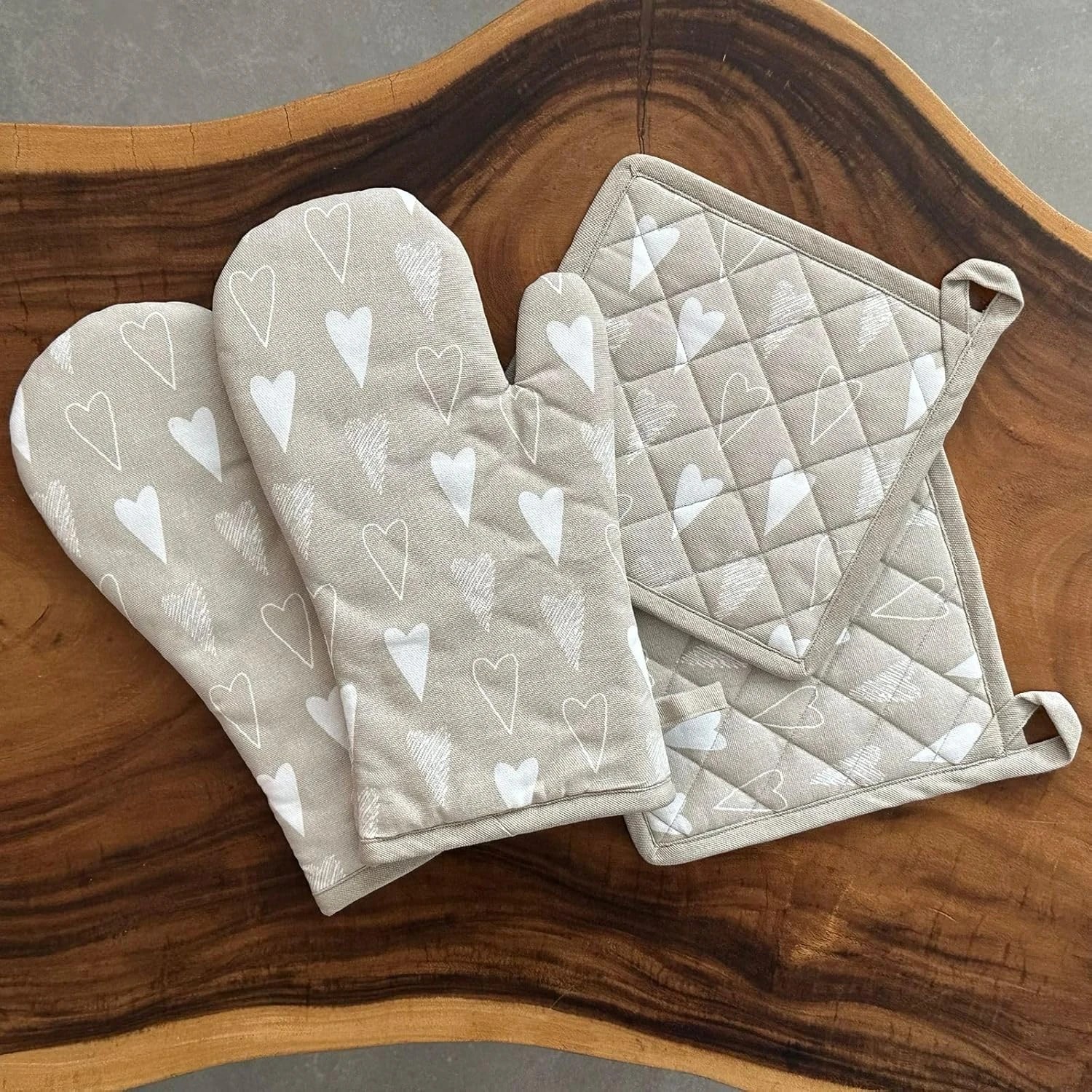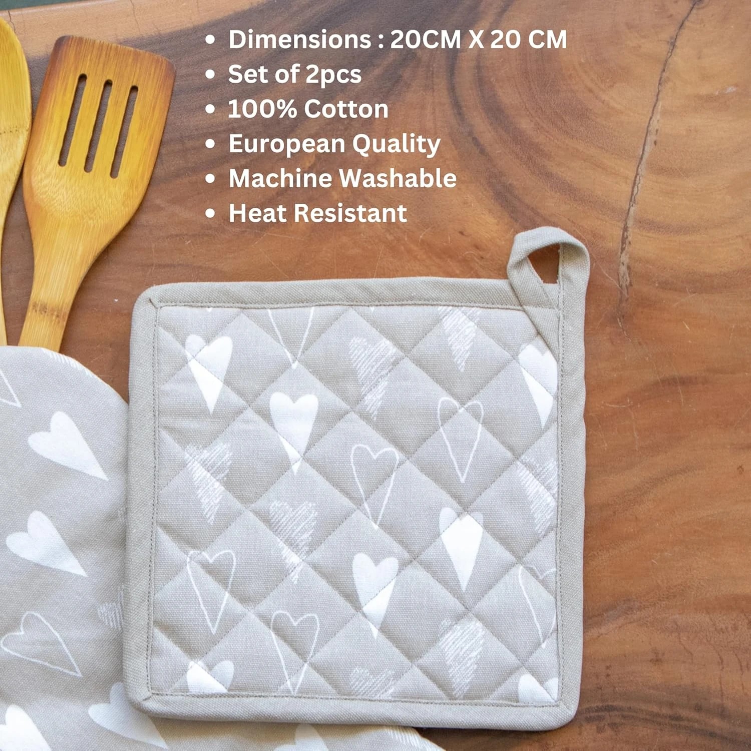 • Crafted from 100% cotton, these oven gloves and pot holders offer exceptional durability and heat resistance. They are designed to withstand the rigors of everyday cooking, providing reliable protection while handling hot pots, pans, and dishes.