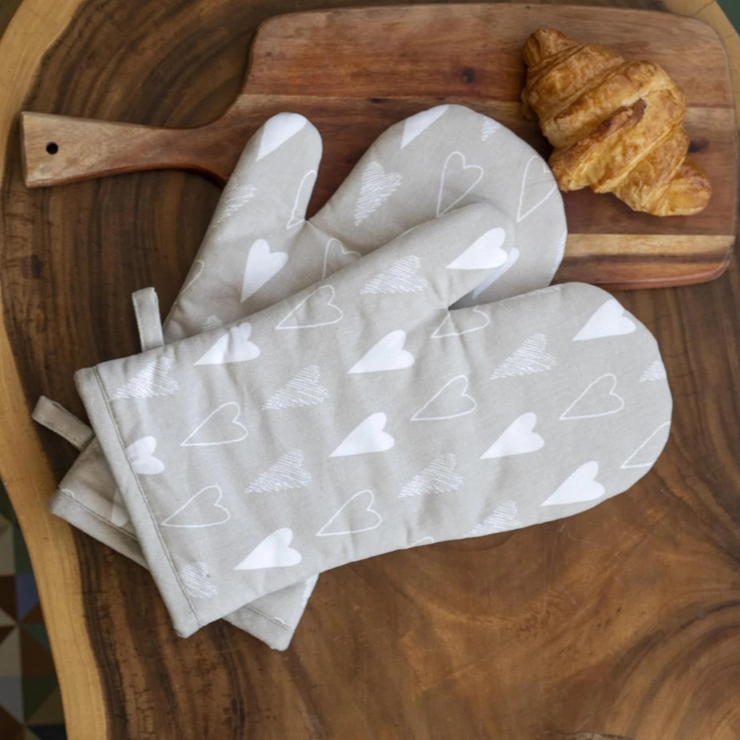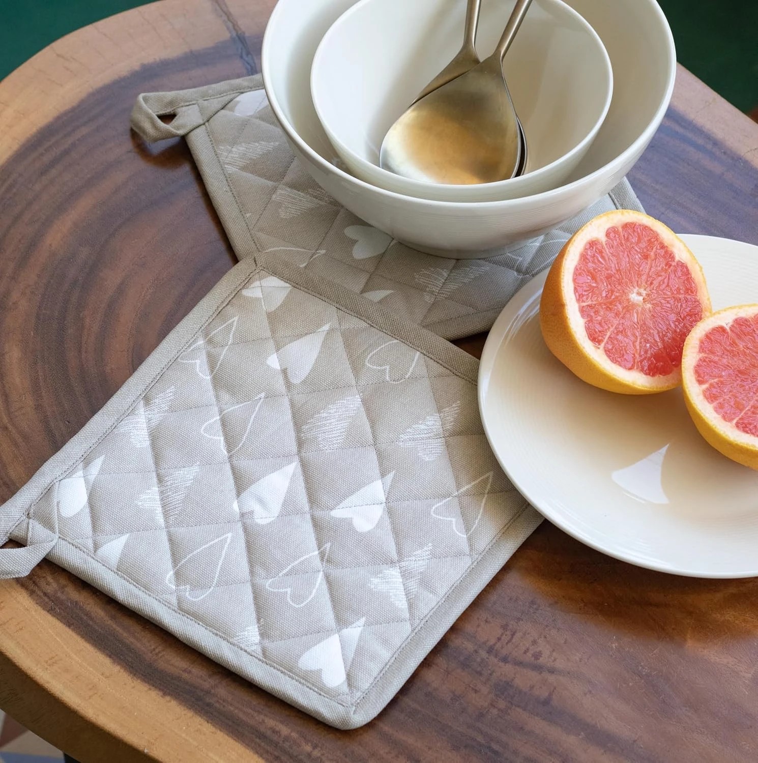 100% Cotton 2 Oven Gloves with 2 Pot Holders- Premium European Quality, Heat Proof, Cushioned & Washable | Oven Mitts for Baking & Grilling (Beige Ivory)