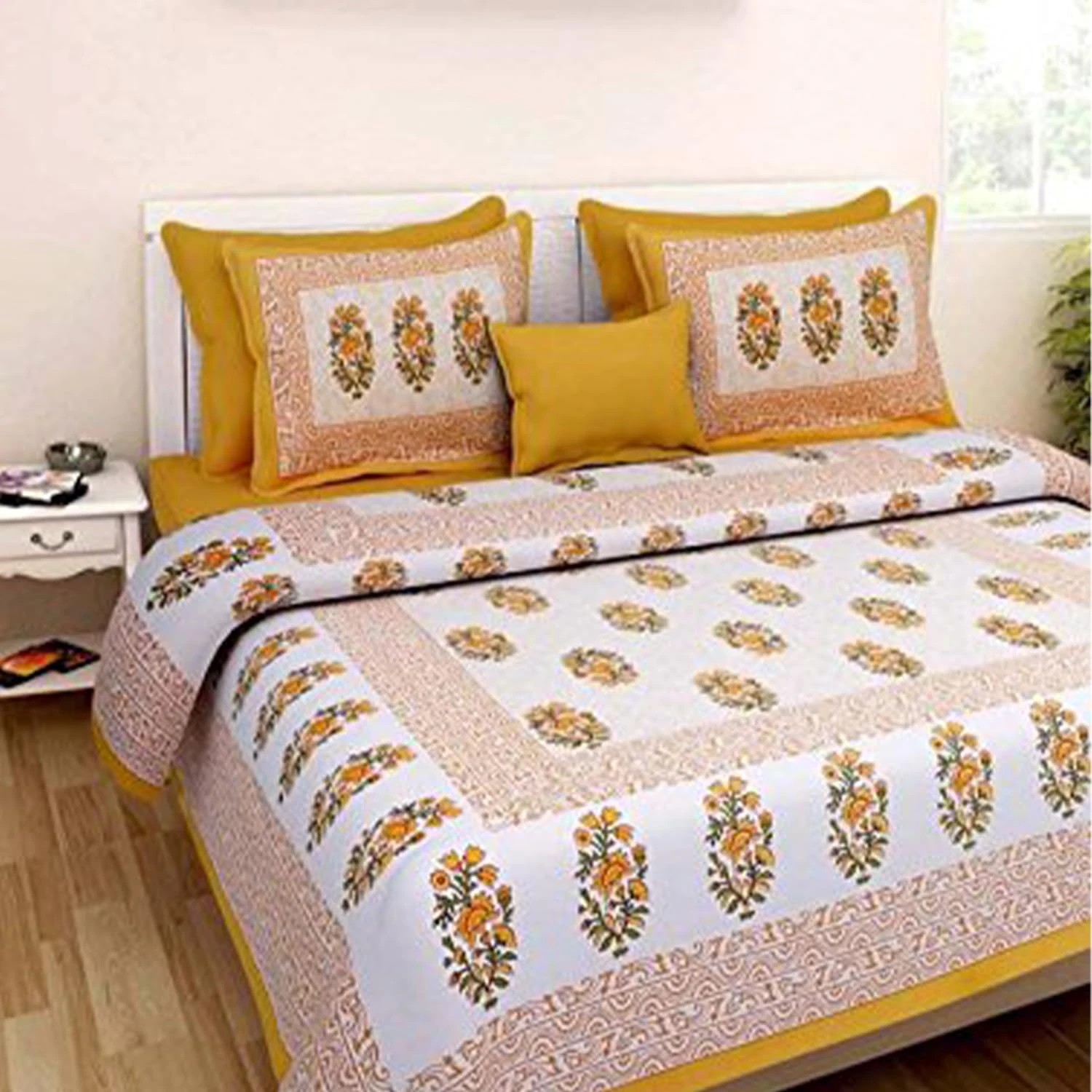 Experience unmatched comfort and durability with this finely woven Double Bed Bedsheet. The 144 thread count fabric ensures a smooth, soft, and breathable texture, making it ideal for everyday use as a bedsheet for double bed or bedsheet for queen size bed.