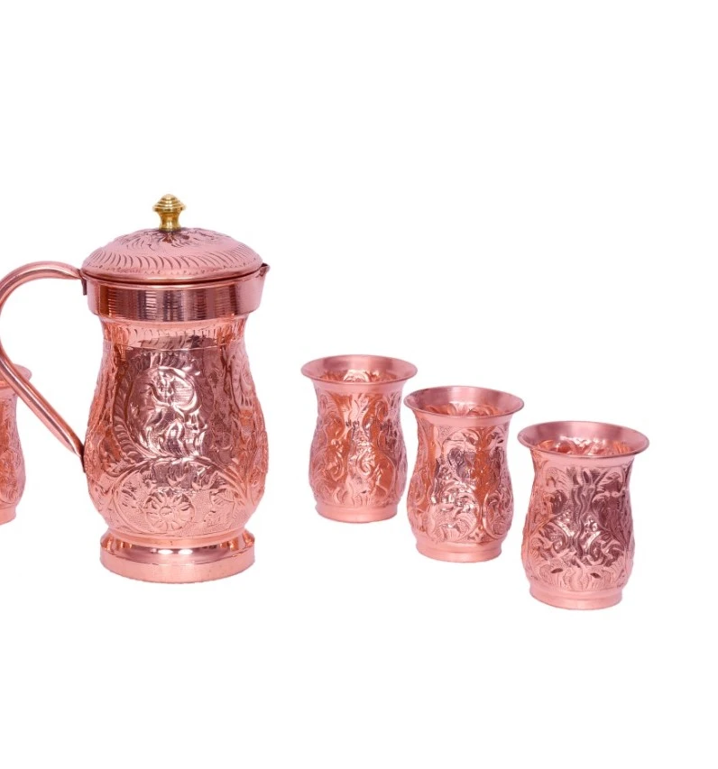 Made from high-quality copper, it offers durability and long-lasting shine. With a large 2-litre capacity, it is perfect for serving water or beverages during family gatherings, parties, or daily use.