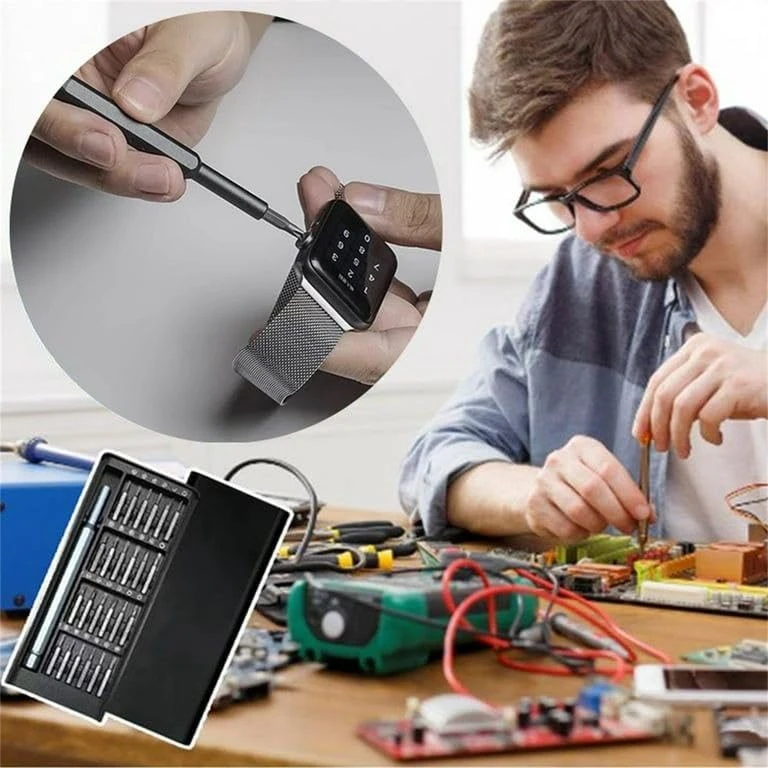 1. 24-in-1 Precision Screwdriver Set: This all-in-one set includes 24 interchangeable bits, perfect for handling delicate repairs on watches, spectacles, laptops, and more. Achieve precision and efficiency with every turn- phones, laptops, game consoles) to intricate tasks on watches, glasses, and jewellery, delivering unmatched precision and versatility for any repair job.