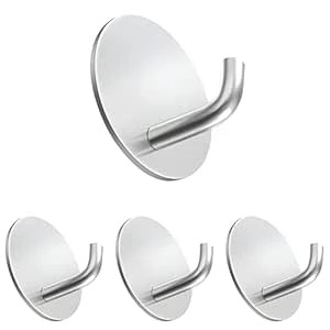 4 Pcs Self-Adhesive Stainless Steel Hooks: Heavy-Duty, Waterproof Wall Hangers for Bathroom and Kitchen - Strong Hold for Coats, Towels, and More, No Drilling Needed (J Round Silver)