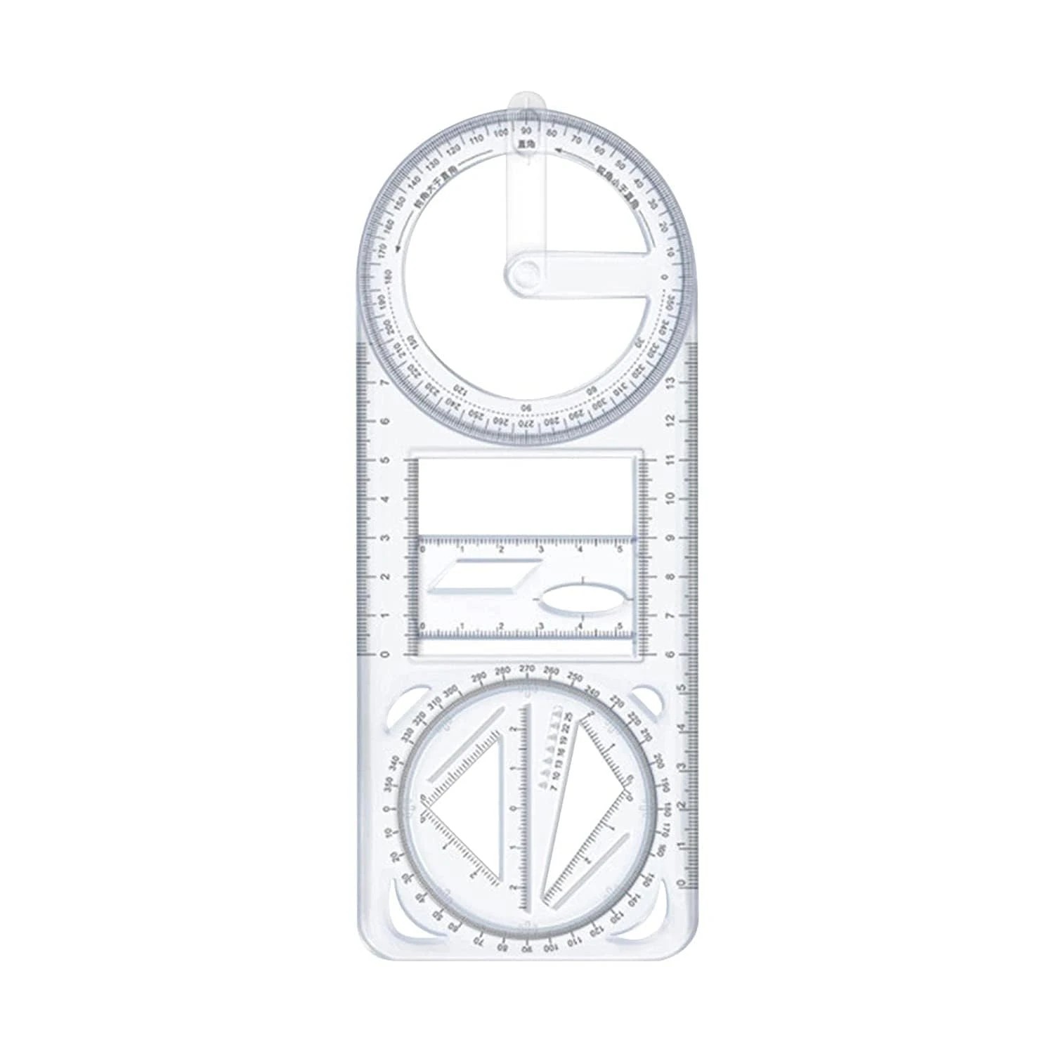 • All-in-One Tool – Combines ruler, protractor, compass, set square, and stencil for versatile drawing, drafting, and measuring applications.