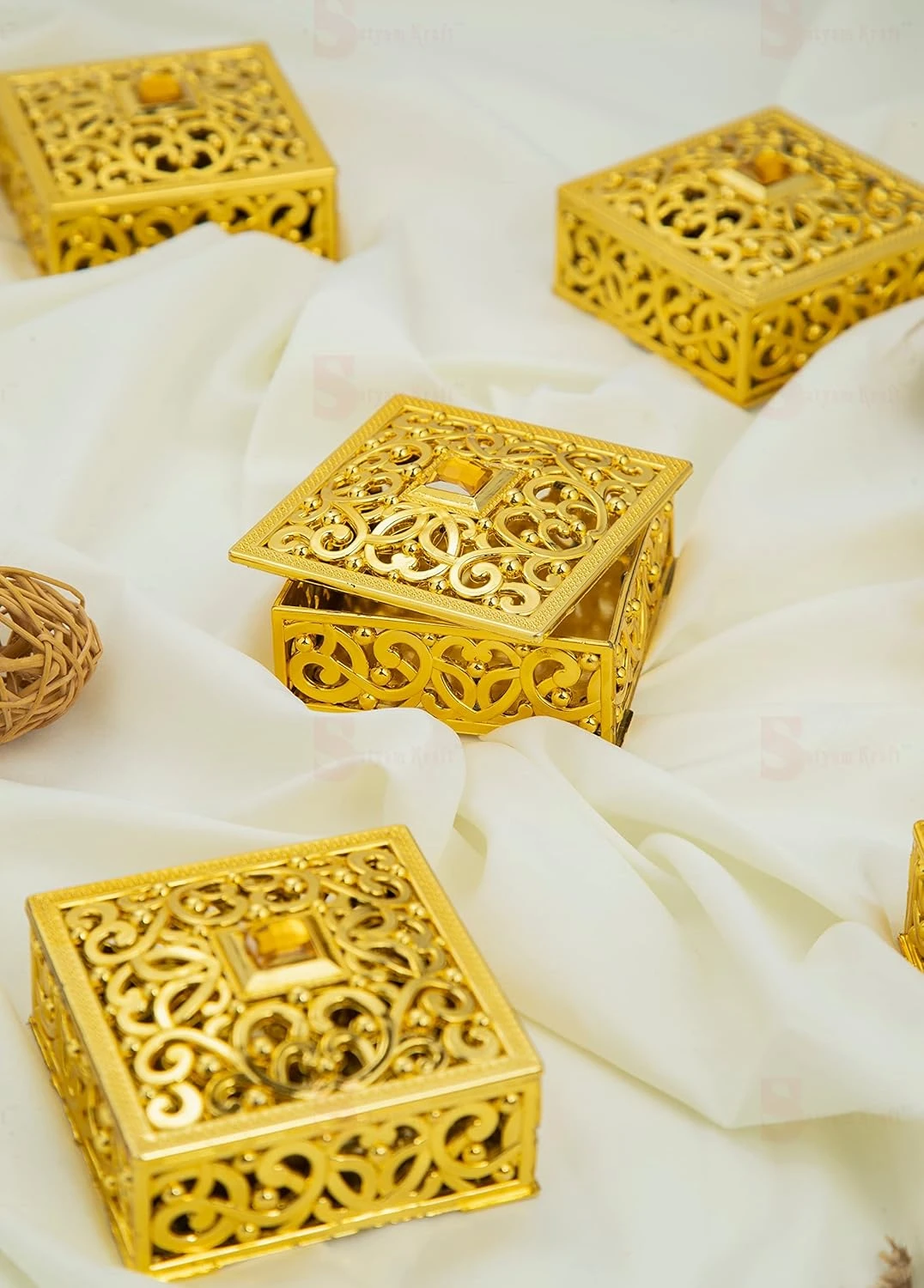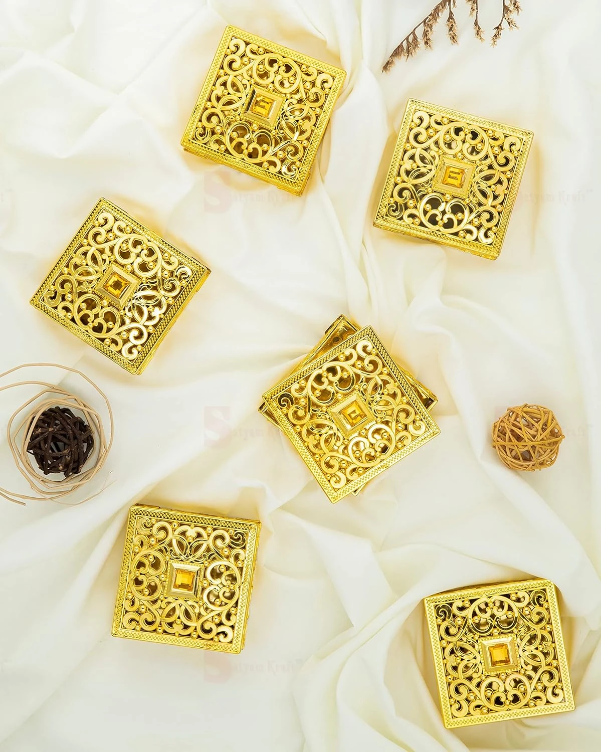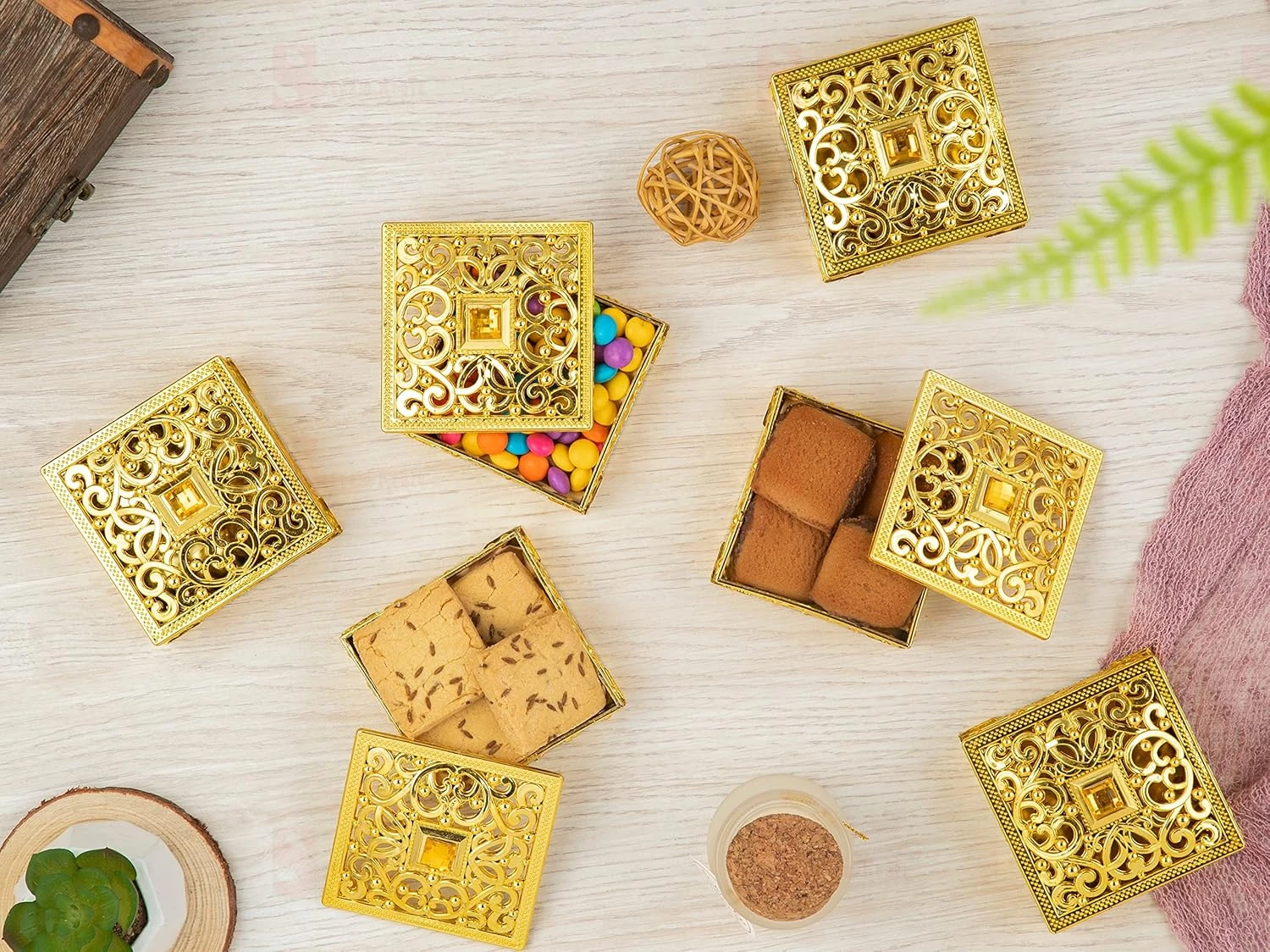 6 Pcs small Golden Decorative Acrylic Gift Boxes With Lid Empty Mini Box for Gifting, Sweets, Return Gifts, jewellery, Wedding, Engagement, Pooja, Festive, Christmas, Small storage