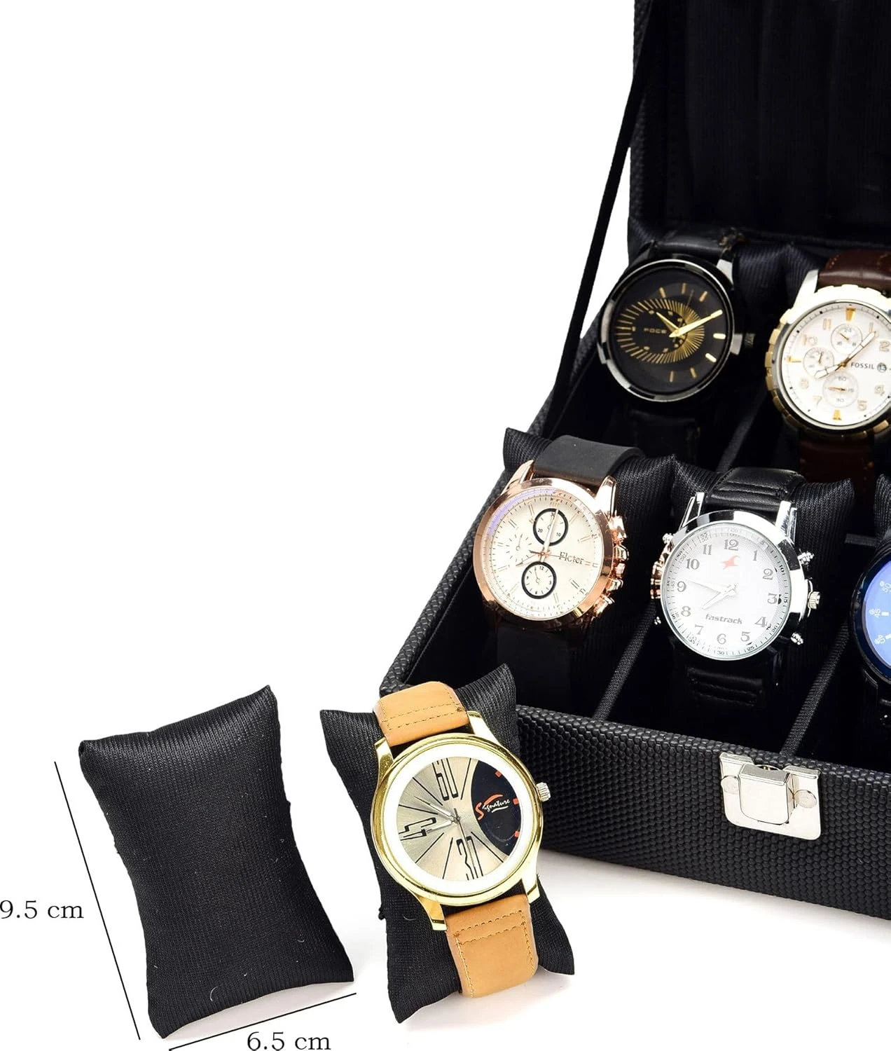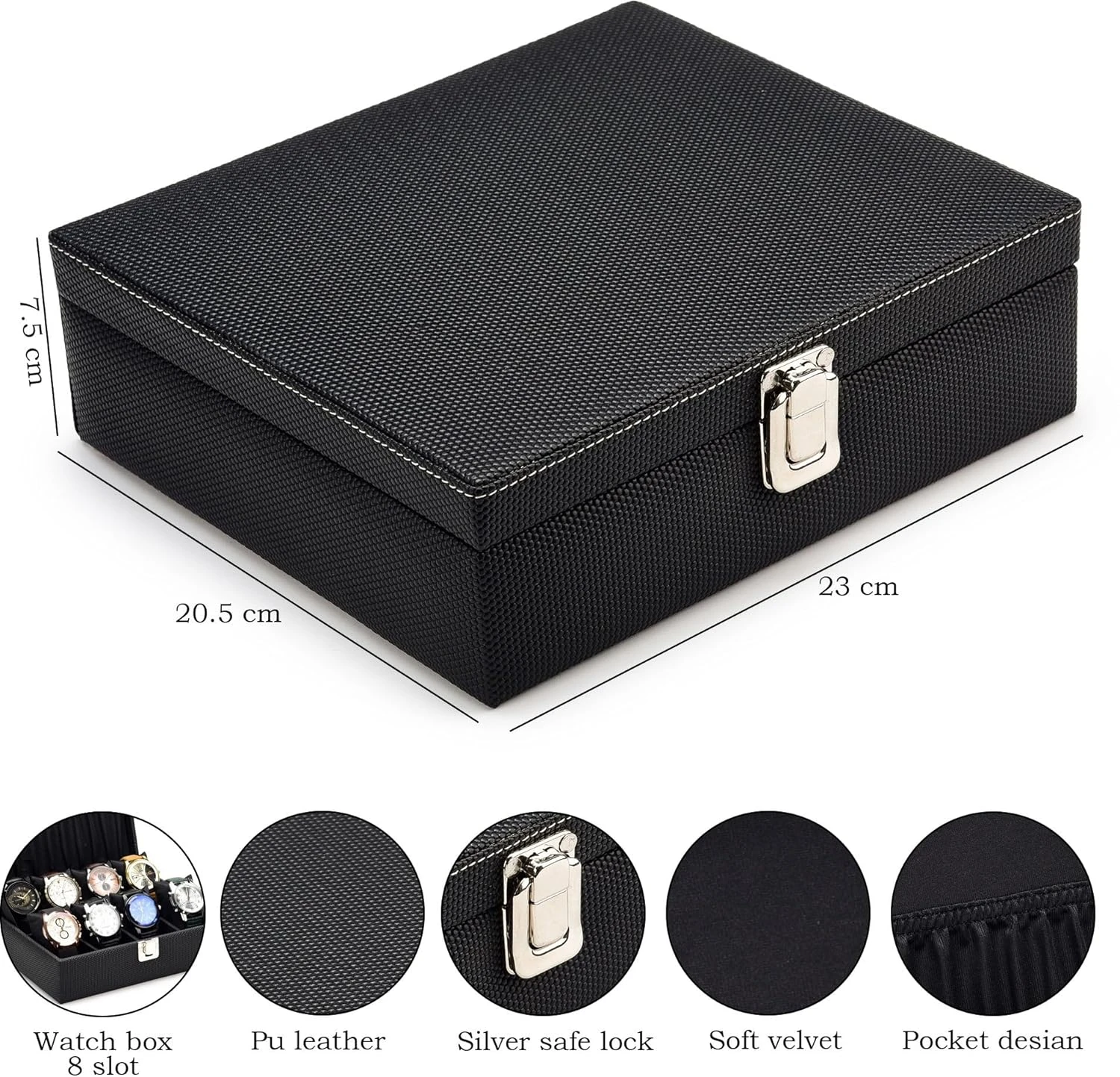 8 Slots Black Unisex Watch Box Organiser Watch Box (Holds 8 Watches) (Black&Maroon)