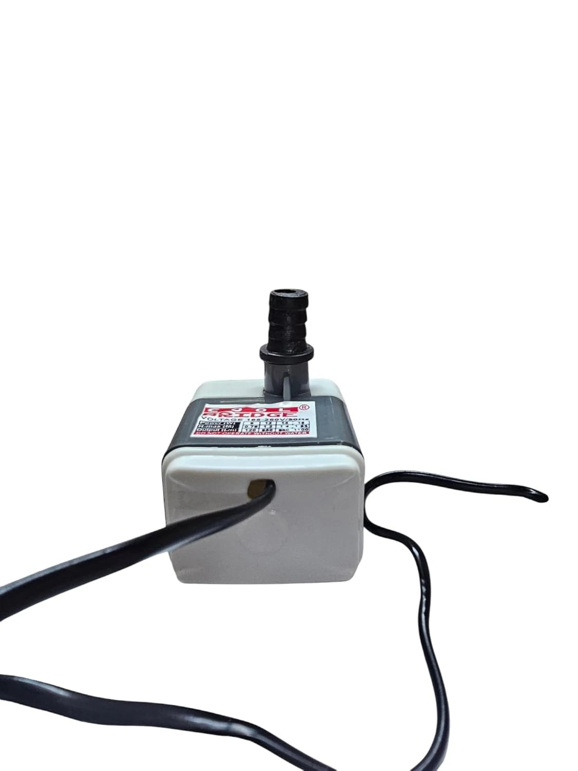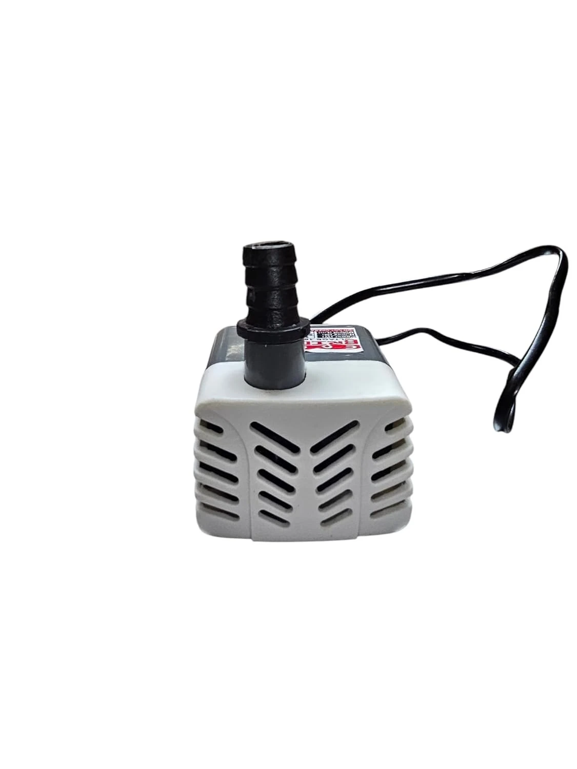 Transform your aquatic displays with this compact and efficient submersible water pump. Perfect for small fountains, aquariums, and water features, this versatile pump combines reliable performance with quiet operation. The durable construction features a two-tone grey and white housing with strategic ventilation slots for optimal cooling. The pump comes equipped with a standard black barbed outlet fitting for easy tube connection. Its compact size makes it ideal for space-constrained installations, while the integrated power cord ensures convenient placement. Whether you're maintaining a tabletop fountain or powering a small water feature, this pump delivers consistent water circulation with minimal energy consumption. The robust motor housing protects internal components while maintaining efficient operation, making it a dependable choice for your water pumping needs.