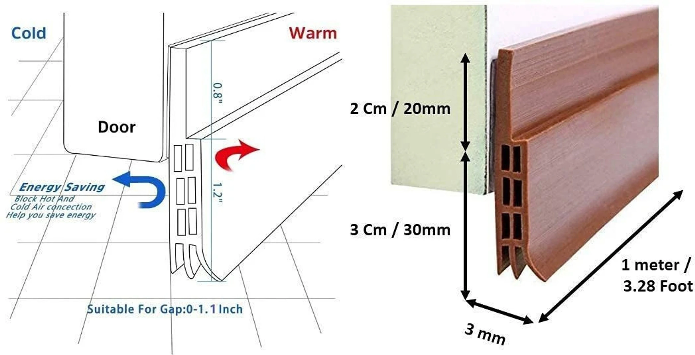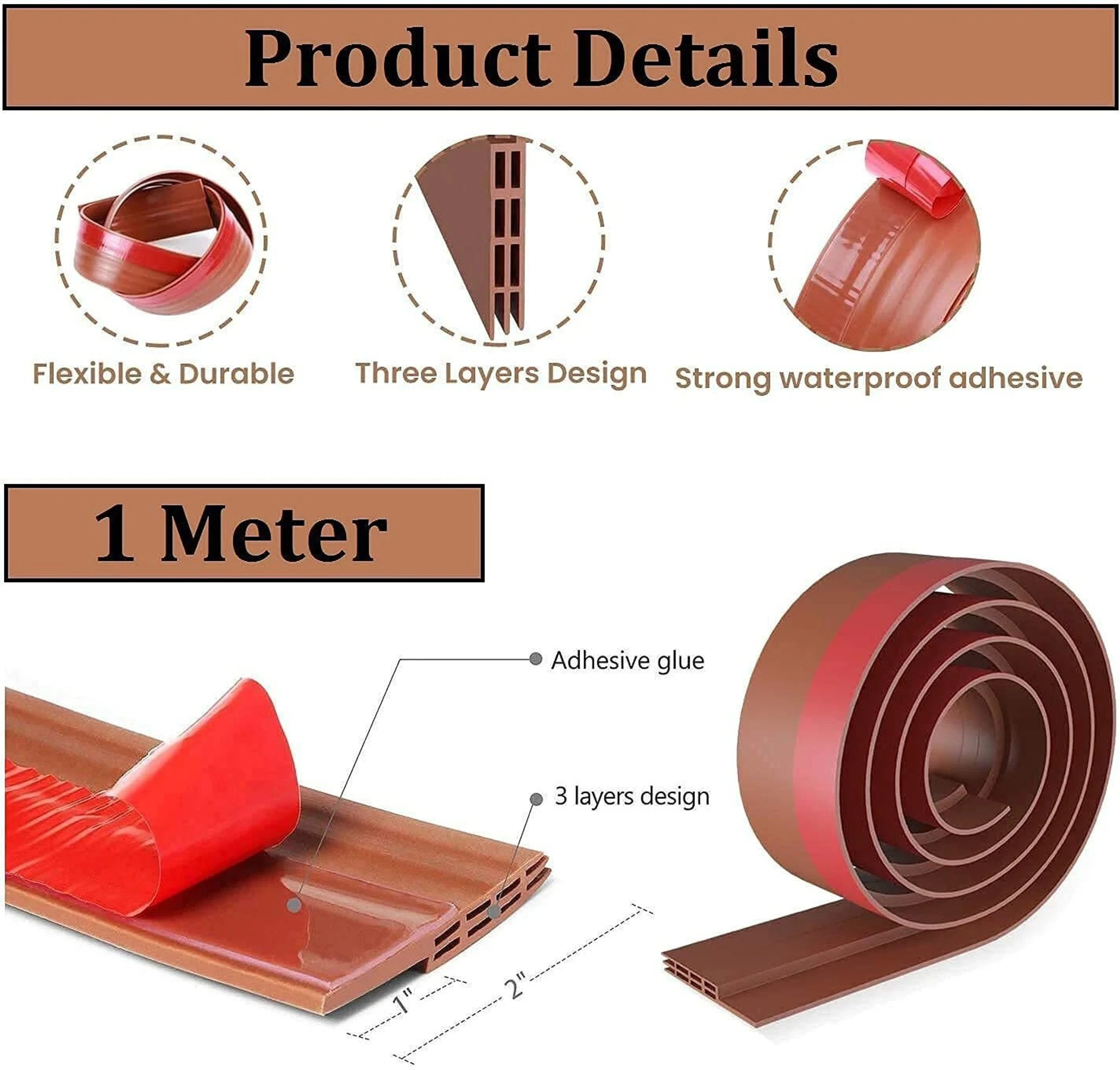 A Door Sealing Strip for Home, Air Gap Silicone Shield Waterproof Weather-Strip Self-Adhesive Window/Door Tape for Seal, Cockroach Insect Bugs Stopper 1 Meter Floor Mounted Door Stopper (Brown)