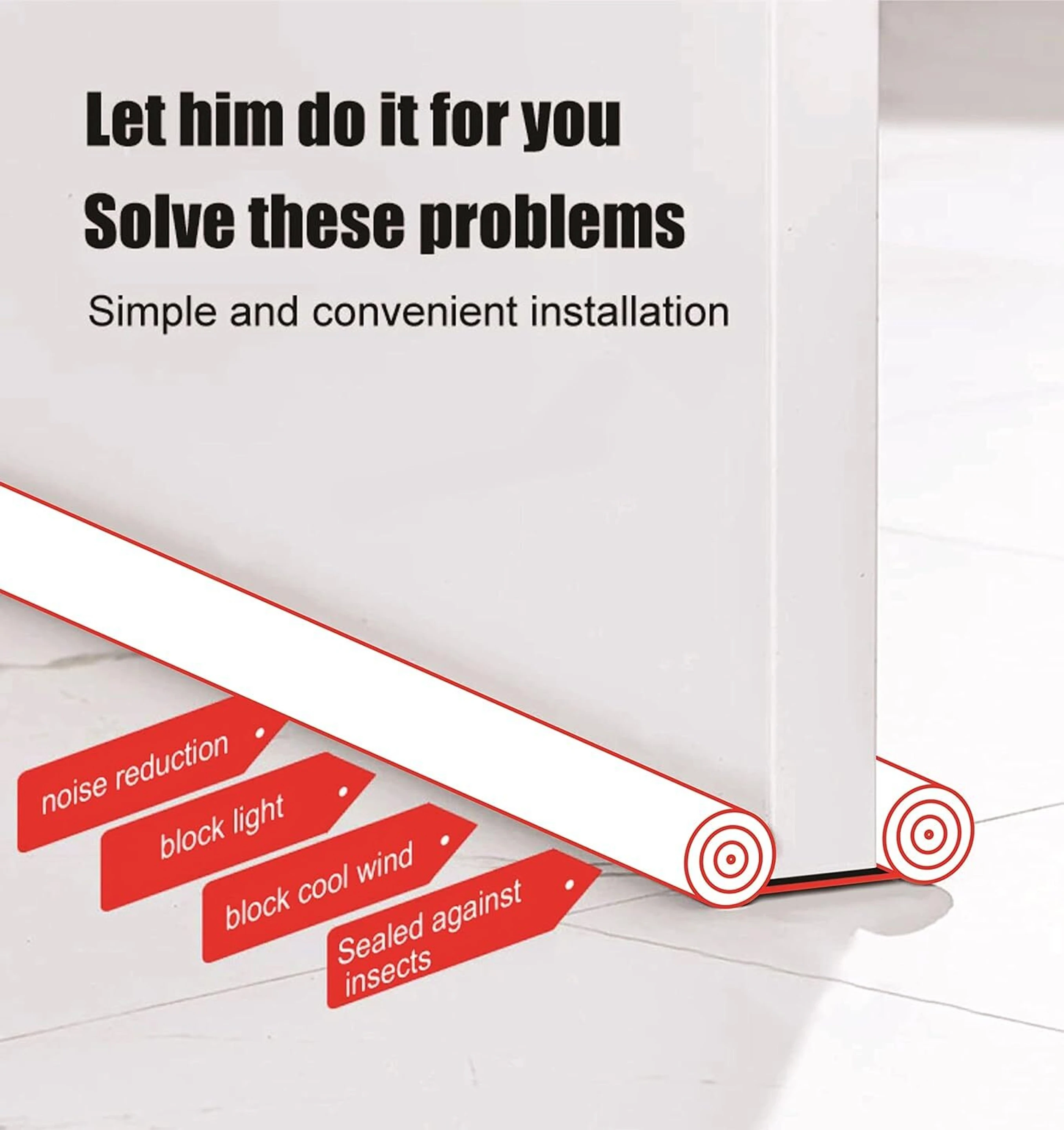 39 inch under door draft stopper keeps the cold air stays out, the heat stays inefficiently helps with the heating and cooling bills. The door draft stopper works efficiently with your doors and windows. Double-sided means double protection. Maximize help to reduces light, noise, wind, cold air and smells. Double side opening for better and easy cutting.1.6 inch dia foam and vinyl cover can be cut down to fit doors.up to 36 inches This door draft blocker easily moves with the door and glides over carpet, wood, tile, etc. No need to bend down and re-position. Radiant draft stopper conveniently moves with your door - no need to constantly bend down to re-position! It is the perfect solution to help insulate your home during any season! During the fridged winters the draft stopper will help seal those drafty doors and keep the heat in. Excellent on those hot humid summer days to help keep your cool air in. Stop wasting your hard earned money on increasingly high heating and air conditioning bills. This multi-purpose draft stopper also works great for drowning out noises. Very useful in dorm rooms and areas you would like to keep quite. Seals openings to block dust, dirt, and odors from entering. The waterproof material creates a barrier that will protect your home through all seasons.