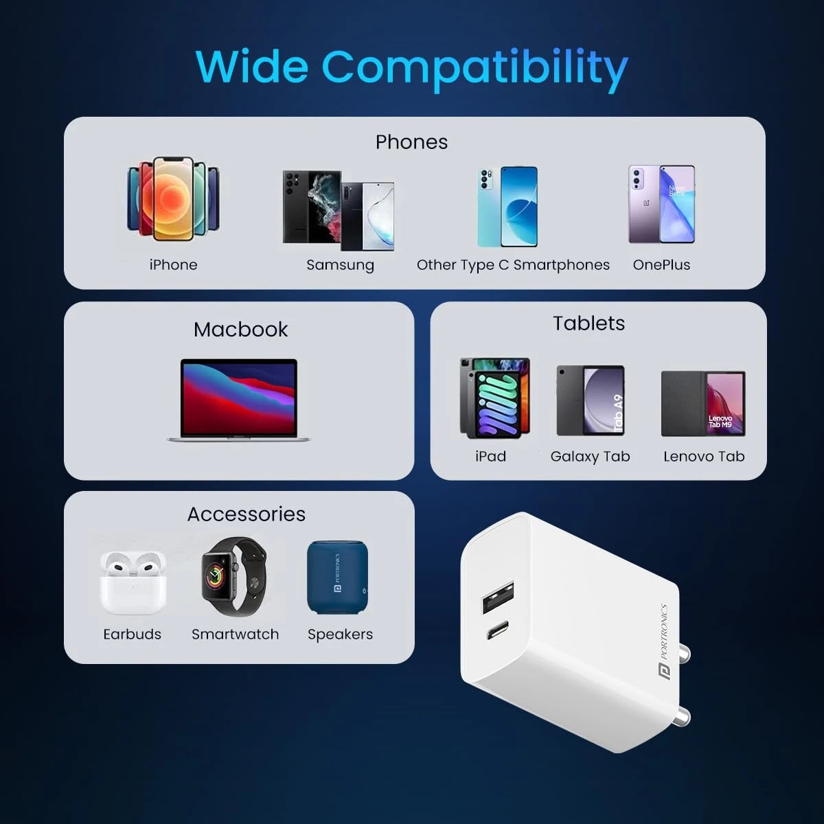 Adapto 70 33W Fast Charger Adapter with Dual Output (USB + Type C) Supports PPS Charging Via Type C Port, 27W Dash, Warp 27W, Dart, Super Dart 27W(White)