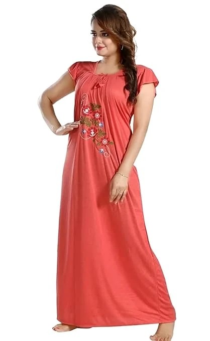 AK Fashion Women Cotton Nighty, Gown, Sleepwear, Nightwear, Maxi - Soft and Stylish Night Suit Women's Pure Hosiery-Night Suit (Orange, XL)