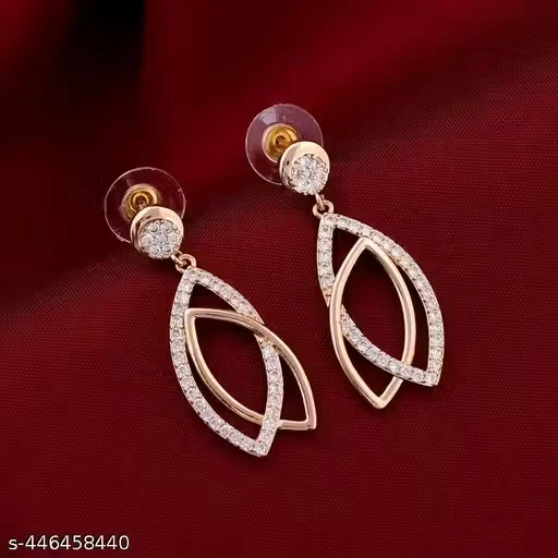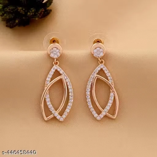 These earrings feature a graceful drop design with a smooth and shiny rose gold-toned finish. Their sleek and attractive look adds a subtle charm and elegance to any outfit.