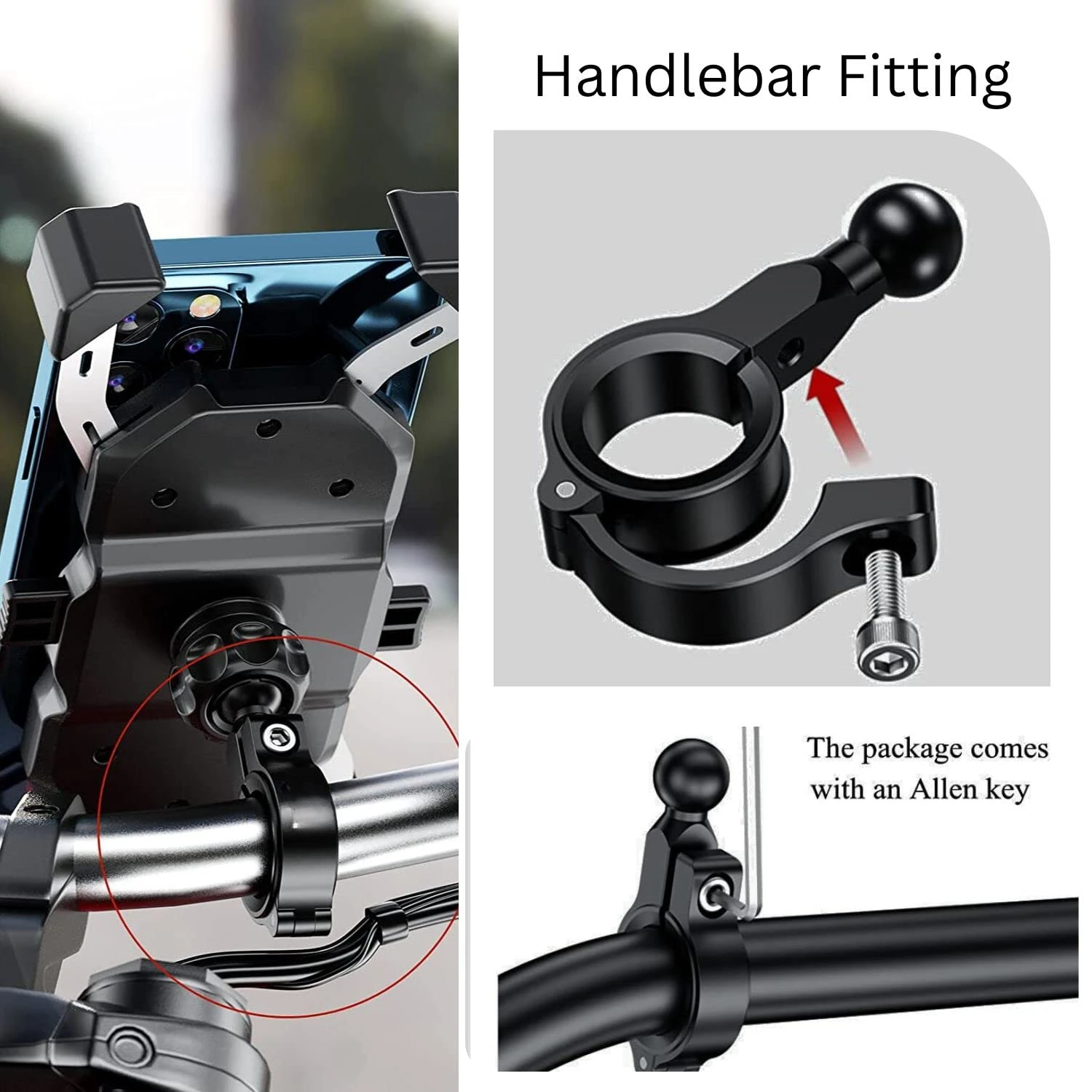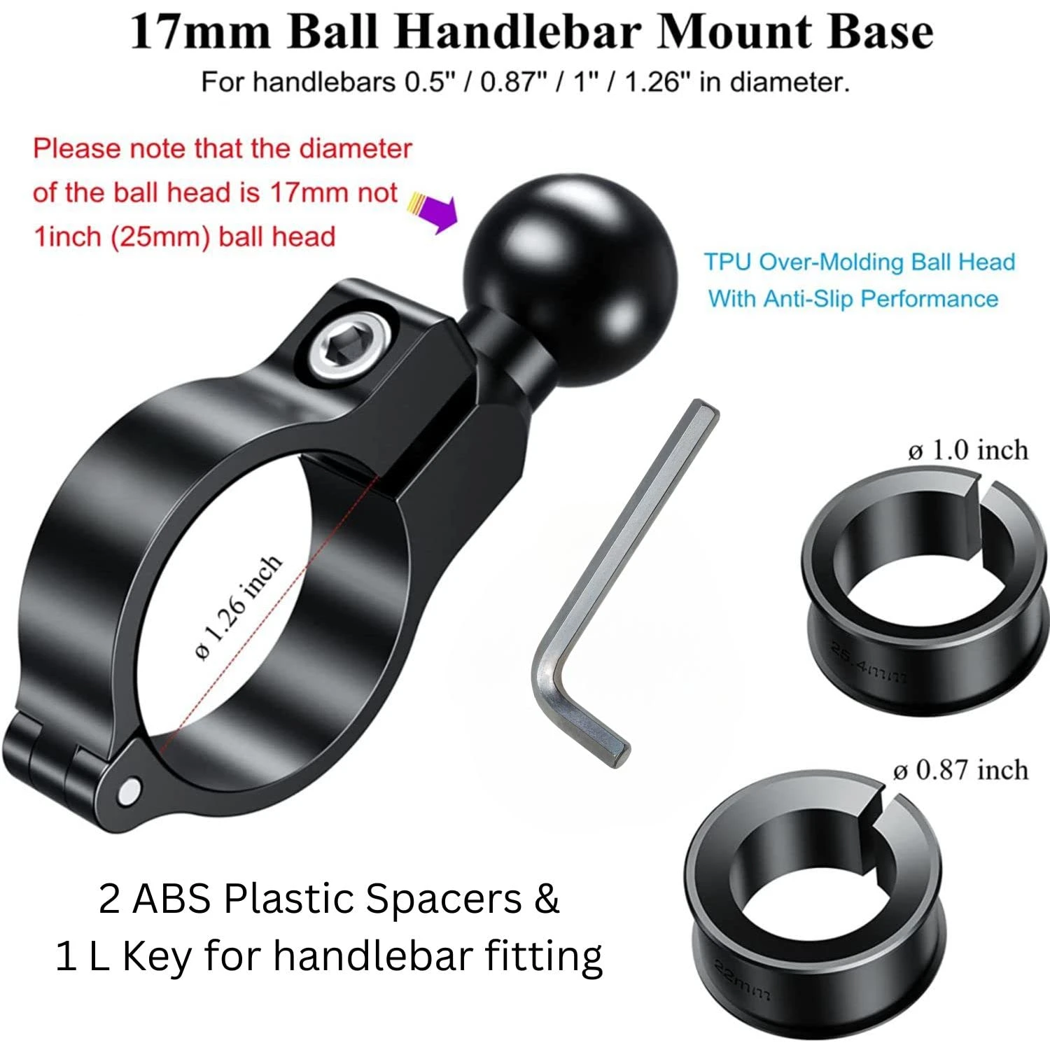 Aluminium Handlebar Mount with 17mm Ball Head | CNC Machined Fix-Type Buckle for Motorcycle, Bike, Scooter | Fits 22mm, 25.4mm, 32mm Bars | Vibration Resistant Mounting Bracket
