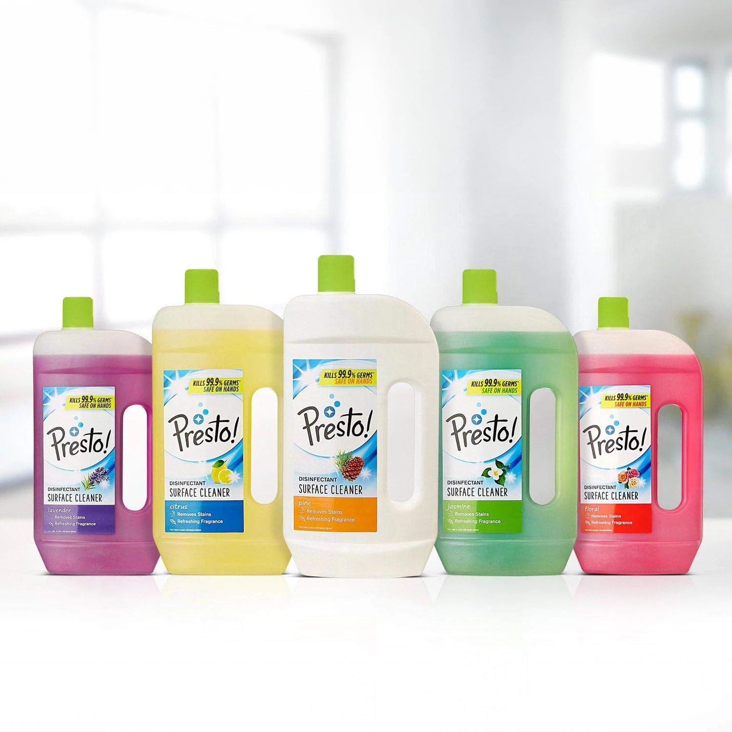 Amazon Brand - Presto! Disinfectant Surface/Floor Cleaner, Pack of 2 - (975 ml Citrus & 975ml Lavend