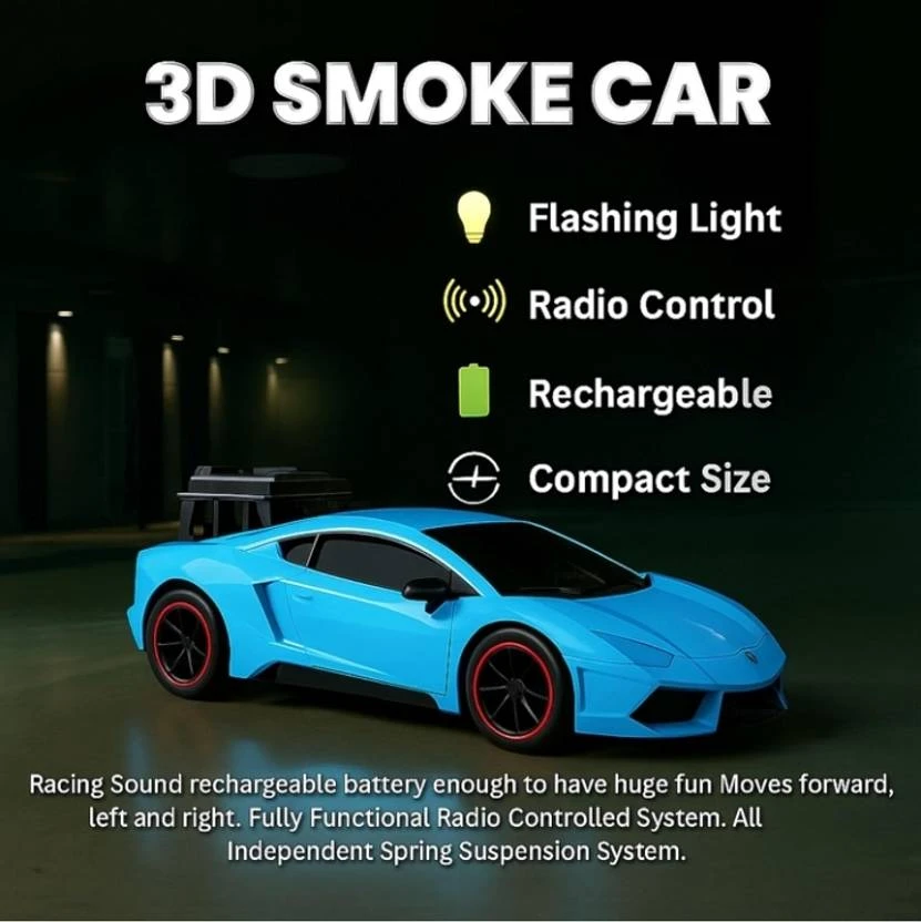 APJ enterprise Remote Control Smoke Car Toy with LED Lights for Kids Multicolor (Blue)