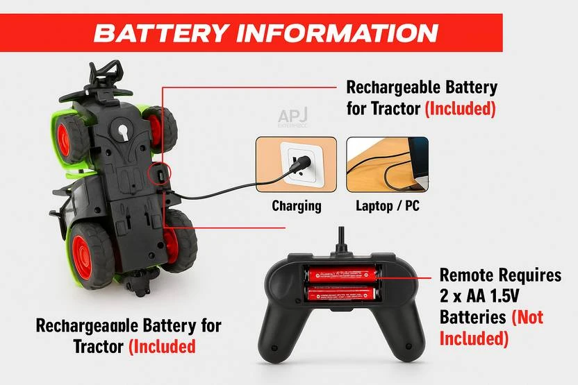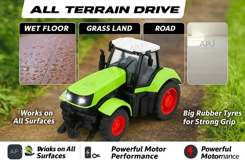 APJ enterprise Remote Control Tractor Toy with Trailer, LED Light, Rechargeable Battery (Green)