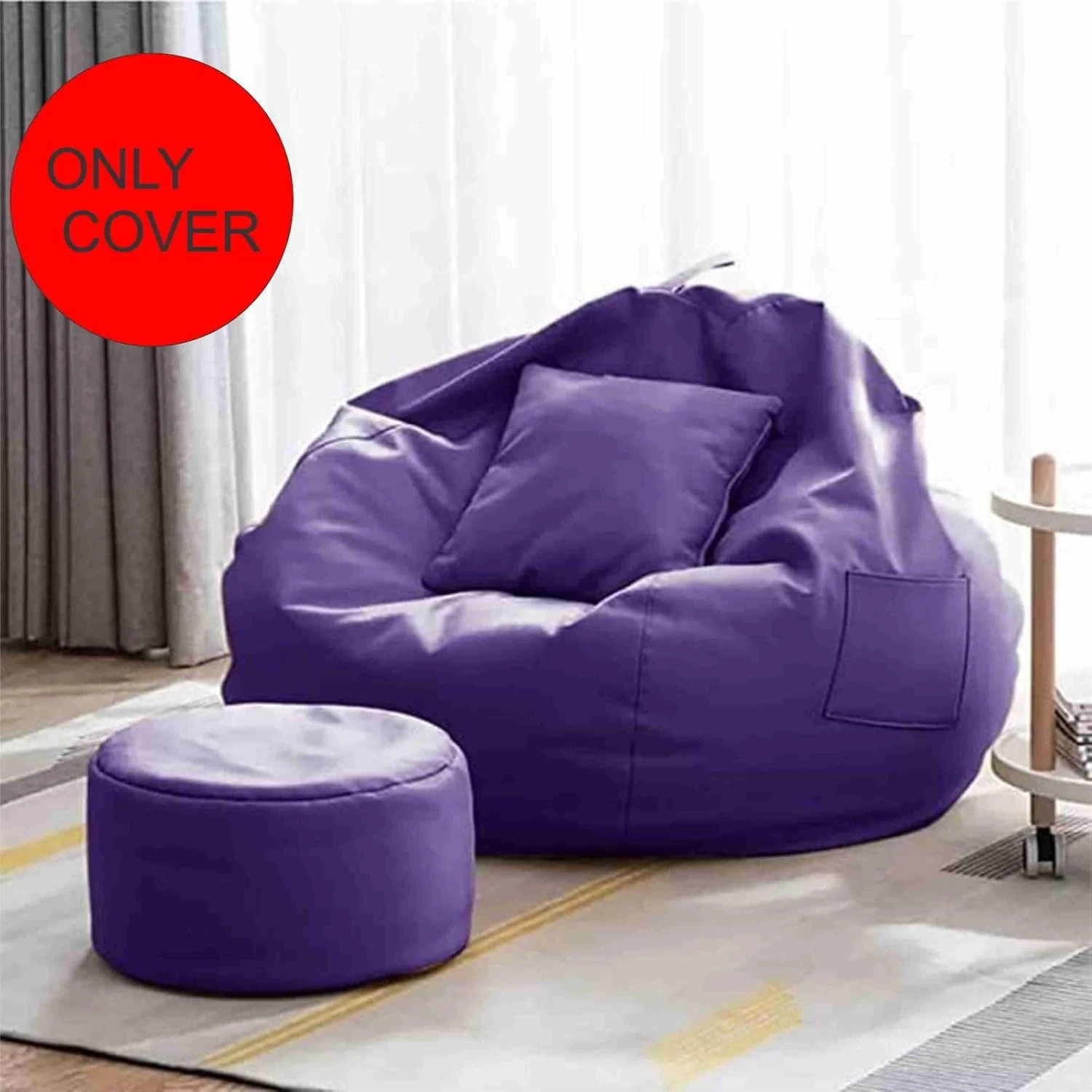 Bean Bag Chair without Beans Filled-Bean Bag Sofa with Footrest Bean Bags for Living Room, Bedroom - Free Cushion & Footrest- Color Purple