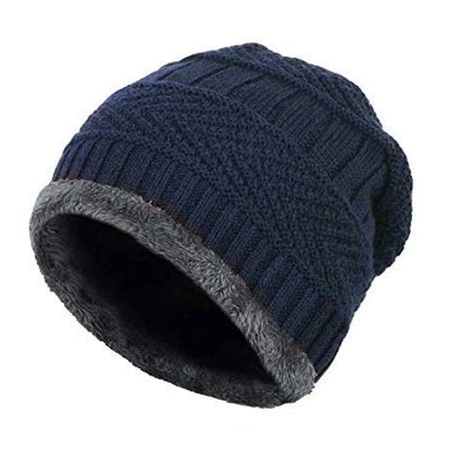 Beanie Cap for Men & Women,Woolen Winter Cap,Unisex Warm Cable Knitted Cap for Men & Women Color Solid Blue