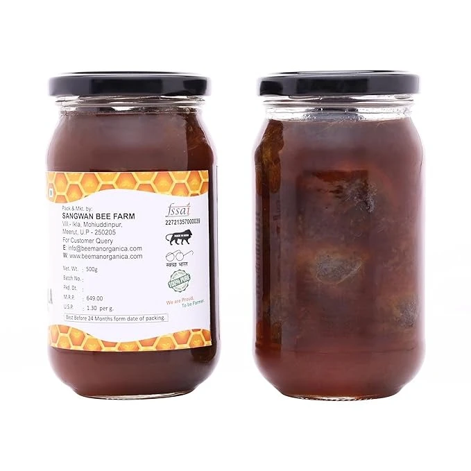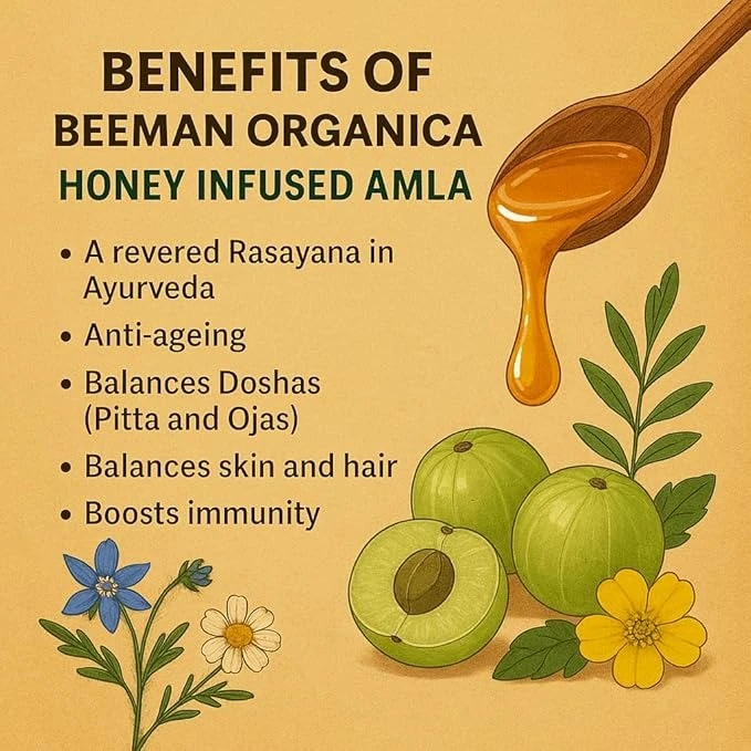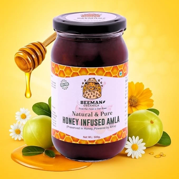 BEEMAN ORGANICA Raw Honey- NMR Tested- 500 Grams (500 grams, Honey Infused Amla)